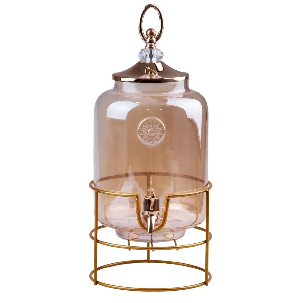 Лимонадница объемом 2 литра с краном, установленным на металлической подставке, представляет собой стильное и функциональное решение для сервировки напитков. Металлическая подставка придает не только стойкость, но и дополнительную декоративную изысканность. Эта лимонадница станет отличным дополнением к вашему столу, предоставляя удобный способ подачи напитков на различных мероприятиях и в повседневной жизни.