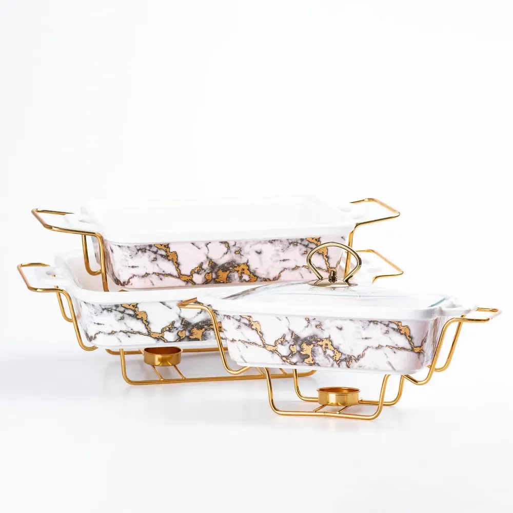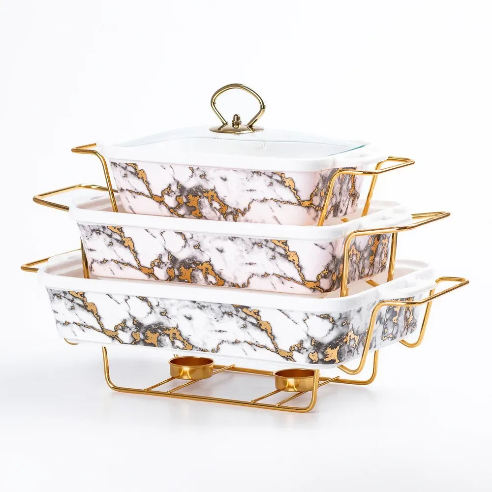 Этот уникальный набор керамических мармитов прямоугольной формы представляет собой идеальное сочетание функциональности и элегантного дизайна. Каждый мармит оборудован крышкой из жаростойкого стекла, что не только позволяет следить за процессом приготовления, но и подчеркивает стильную эстетику посуды. Входящие в комплект специальные подставки не только обеспечивают поддержание температуры блюд, стойкость посуды на столе, но и подчеркивают ее уникальный дизайн. Этот набор идеально подходит для сервировки и подачи разнообразных блюд. Ваша кухня приобретет не только функциональность, но и стильный акцент благодаря этим замечательным керамическим мармитам. Размер первого мармита: 35 см (длина) x 22 см (ширина) x 6 см (глубина).Размер второго мармита: 33 см (длина) x 19 см (ширина) x 6 см (глубина). /ol>