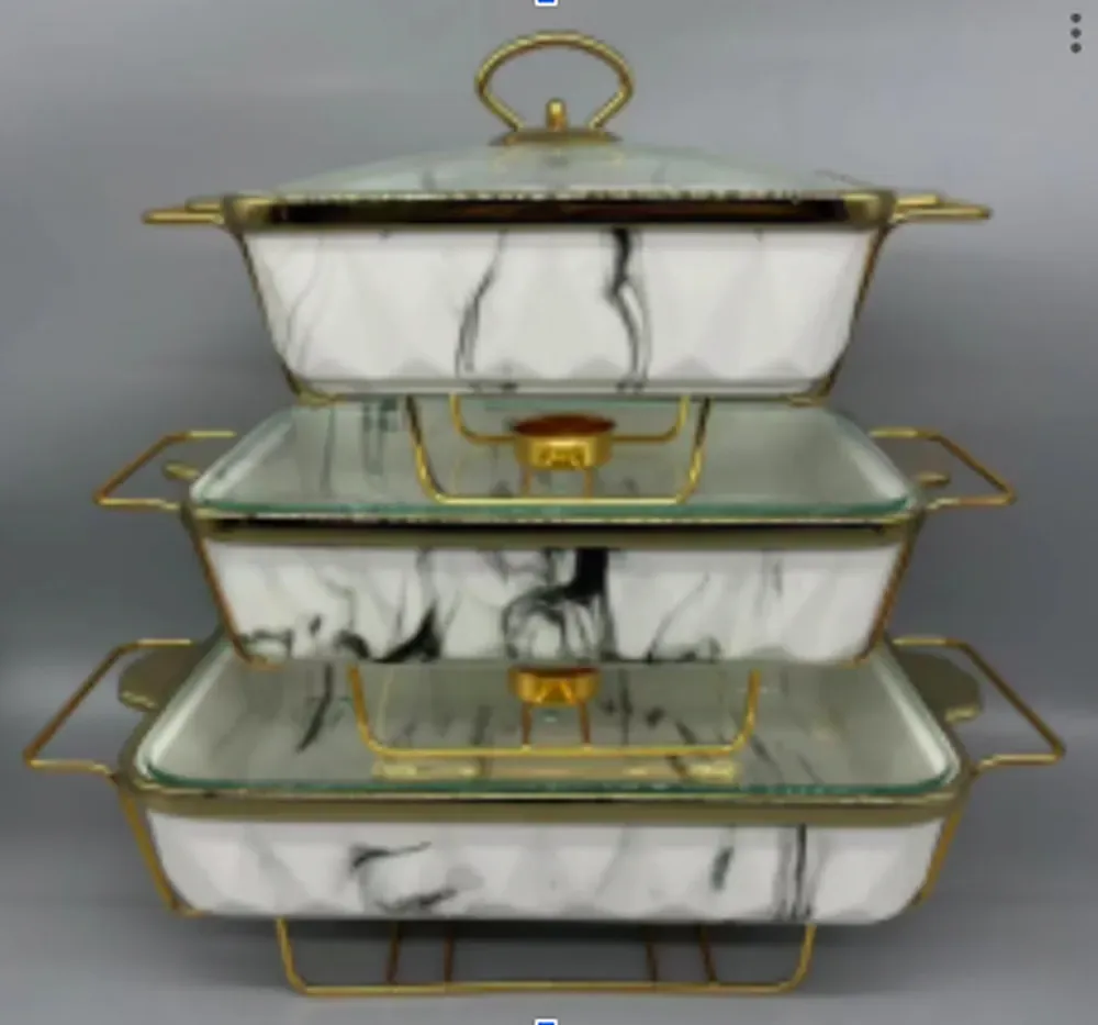 Этот уникальный набор керамических мармитов прямоугольной формы представляет собой идеальное сочетание функциональности и элегантного дизайна. Каждый мармит оборудован крышкой из жаростойкого стекла, что не только позволяет следить за процессом приготовления, но и подчеркивает стильную эстетику посуды. Входящие в комплект специальные подставки не только обеспечивают поддержание температуры блюд, стойкость посуды на столе, но и подчеркивают ее уникальный дизайн. Этот набор идеально подходит для сервировки и подачи разнообразных блюд. Ваша кухня приобретет не только функциональность, но и стильный акцент благодаря этим великолепным керамическим мармитам.