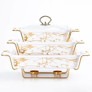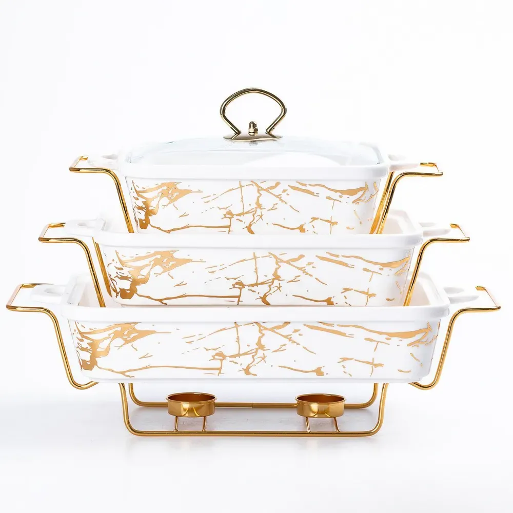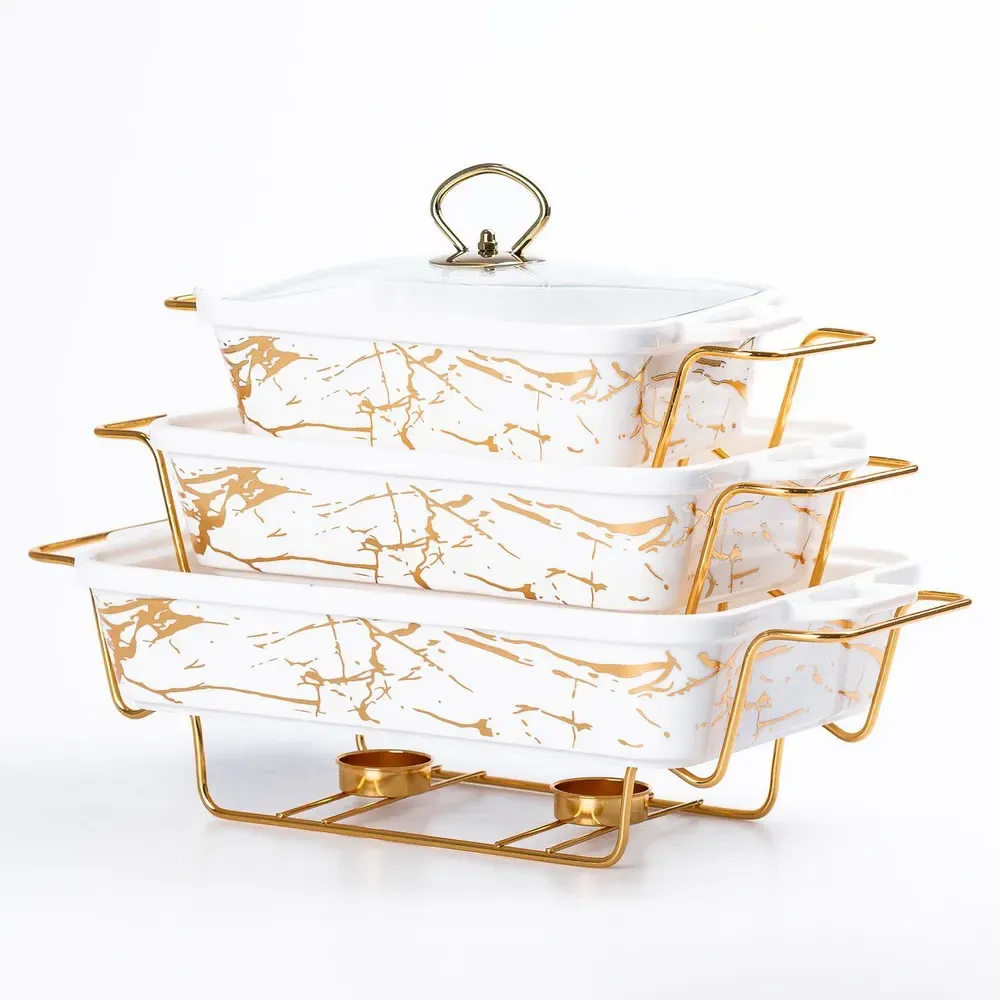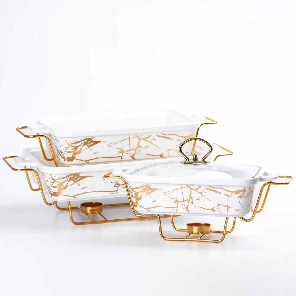 Этот уникальный набор керамических мармитов прямоугольной формы представляет собой идеальное сочетание функциональности и элегантного дизайна. Каждый мармит оборудован крышкой из жаростойкого стекла, что не только позволяет следить за процессом приготовления, но и подчеркивает стильную эстетику посуды. Входящие в комплект специальные подставки не только обеспечивают поддержание температуры блюд, стойкость посуды на столе, но и подчеркивают ее уникальный дизайн. Этот набор идеально подходит для сервировки и подачи разнообразных блюд. Ваша кухня приобретет не только функциональность, но и стильный акцент благодаря этим замечательным керамическим мармитам. Размер первого мармита: 35 см (длина) x 22 см (ширина) x 6 см (глубина).Размер второго мармита: 33 см (длина) x 19 см (ширина) x 6 см (глубина). /ol>