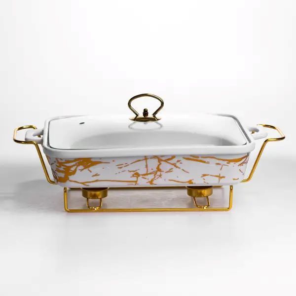 Мармітниця порцелянова 2 л прямокутна на металевій підставці 40х22.5х15.5 см LT-3PCS-15 (LT-3PCS-15)