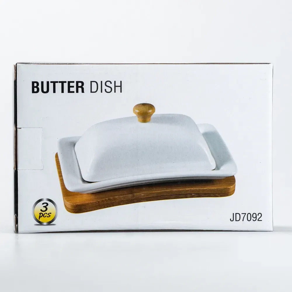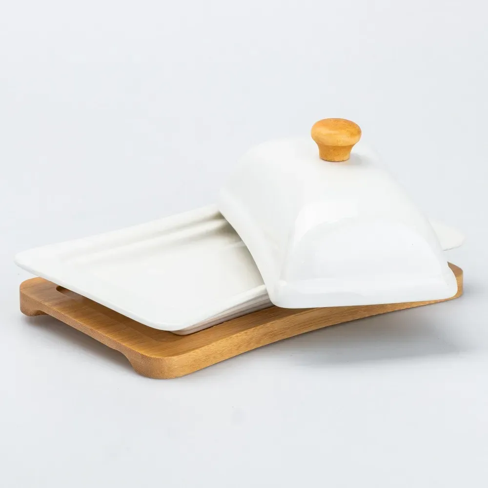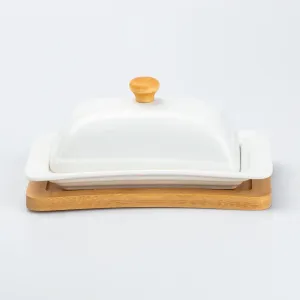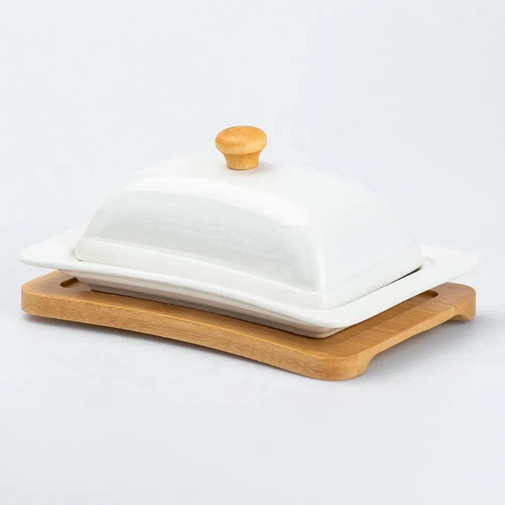 Масленка для сливочного масла и сыра с бамбуковой крышкой 18 х 11.5 х 7 см (HP255)