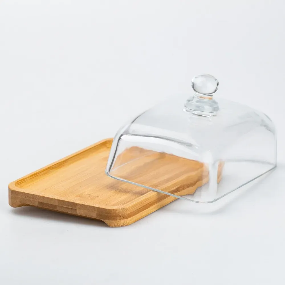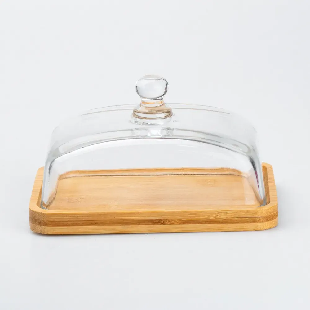 Масленка для сливочного масла и сыра с бамбуковой крышкой. Размер масленки 18 х 12 х 9 см. Масленка представляет собой элемент кухонной посуды, предназначенный для хранения и сервировки сливочного масла. Большинство хозяек выбирают именно такой способ хранения, поскольку в таком изделии прекрасно сохраняются вкусовые качества продукта, и не впитываются различные посторонние запахи. Основные преимущества Универсальность: подходит для хранения сливочного масла, сыра, маргарина и др. Гигиеничность: бамбук не впитывает запахи, а стекло легко моется. Прозрачная крышка: позволяет видеть содержание масленки.