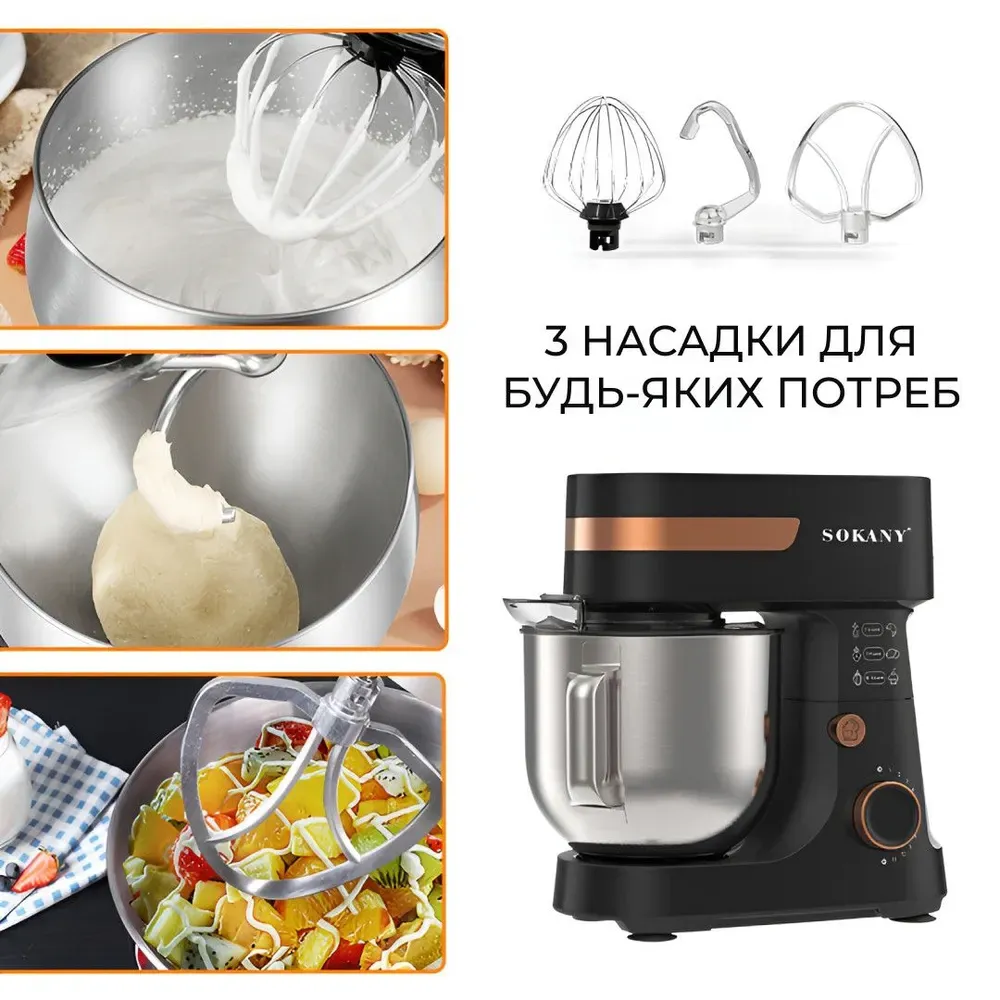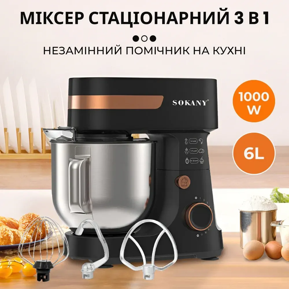 Миксер стационарный Sokany – это надежный и мощный кухонный прибор, позволяющий легко и быстро замесить тесто или взбить ингредиенты. Благодаря мощности 1000 Вт вы сможете без труда приготовить вкусные блюда. Основные характеристики: Мощность и эффективность. Миксер Sokany с мощностью 1000 Вт обеспечивает быстрое и эффективное перемешивание, миксование и взбивание различных ингредиентов.
