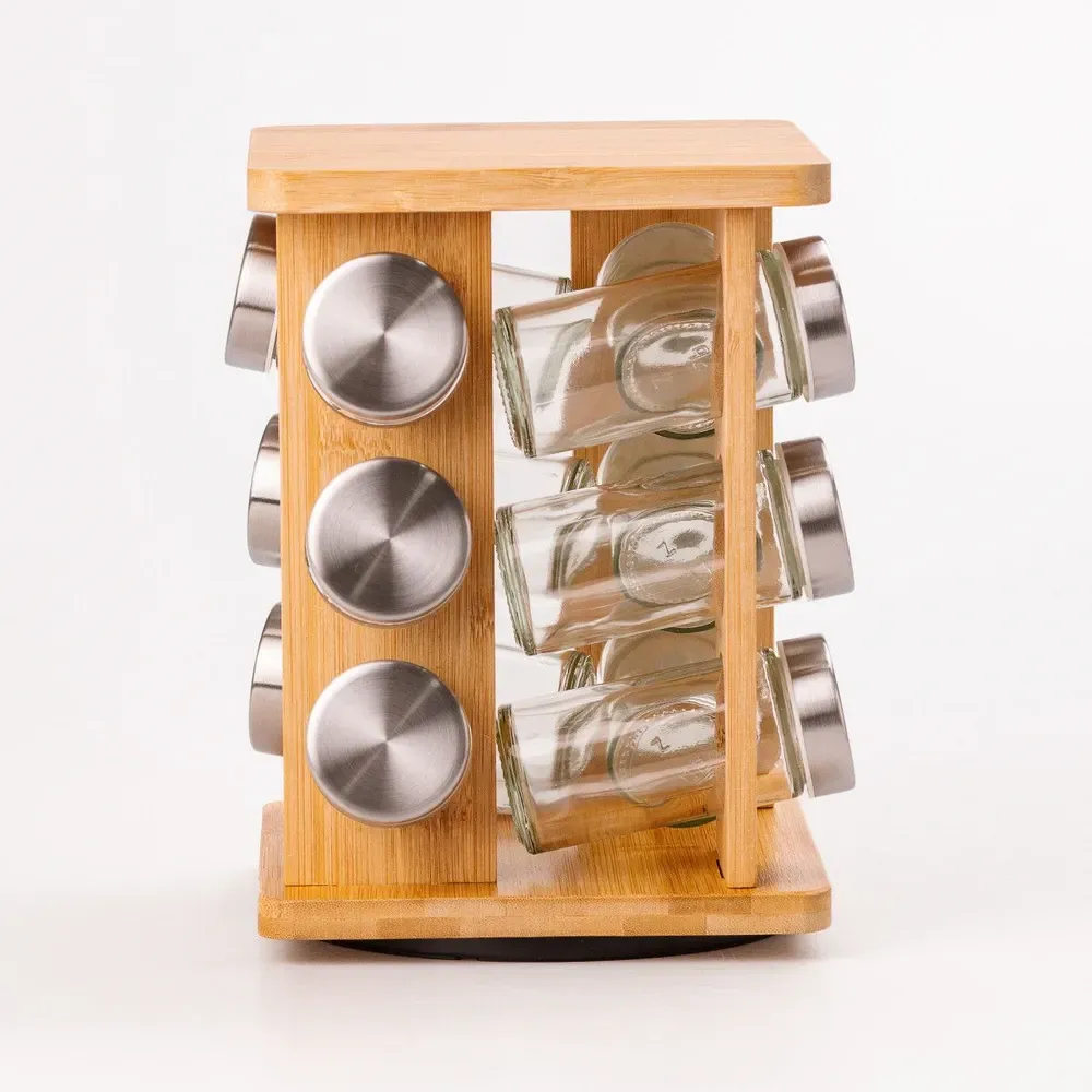 Набор для специй на деревянной подставке включает 12 емкостей по 100 мл каждой. Каждая емкость предназначена для удобного хранения и дозировки разных специй. Деревянная подставка не только обеспечивает надежную поддержку для емкостей, но и придает стильный и органический вид. специй.