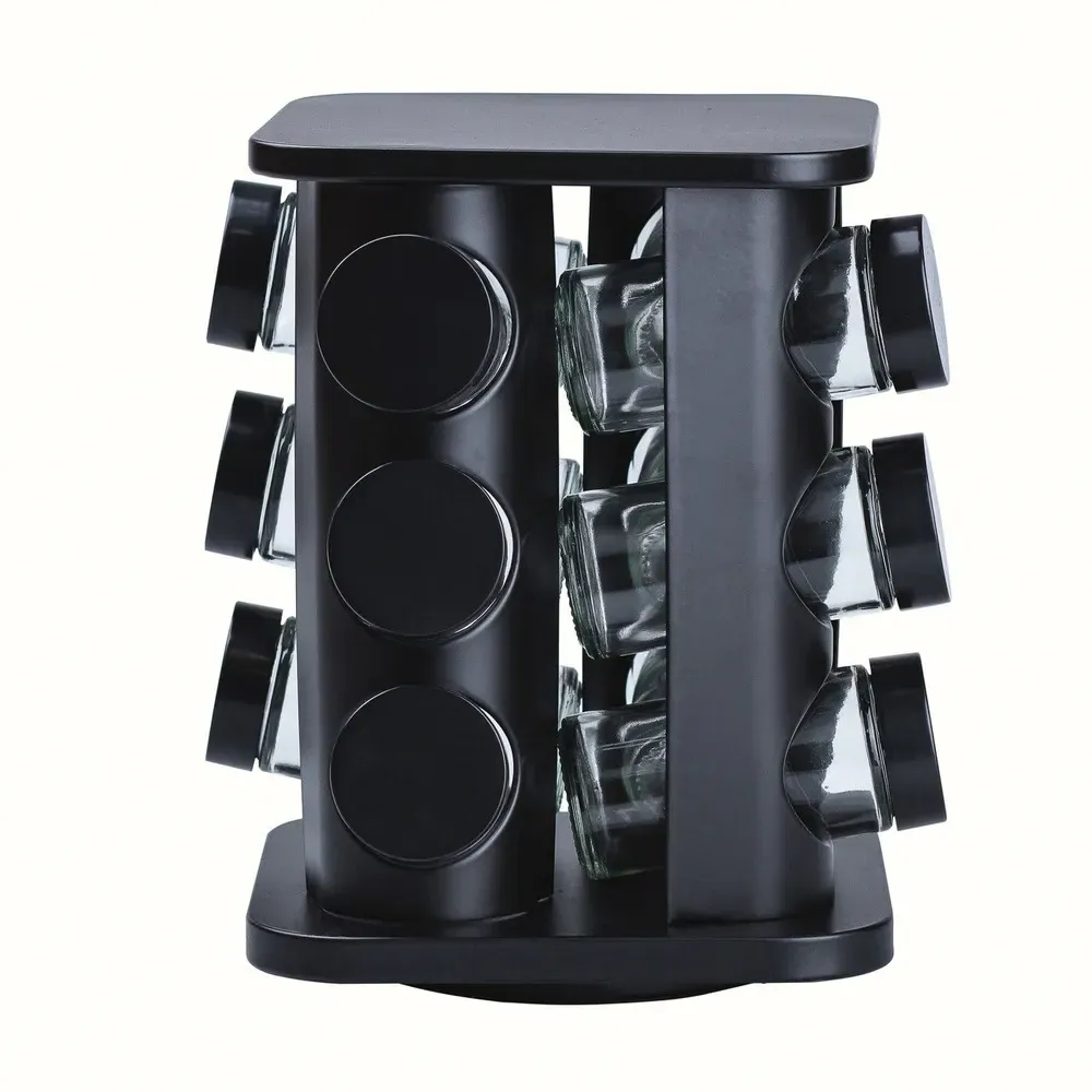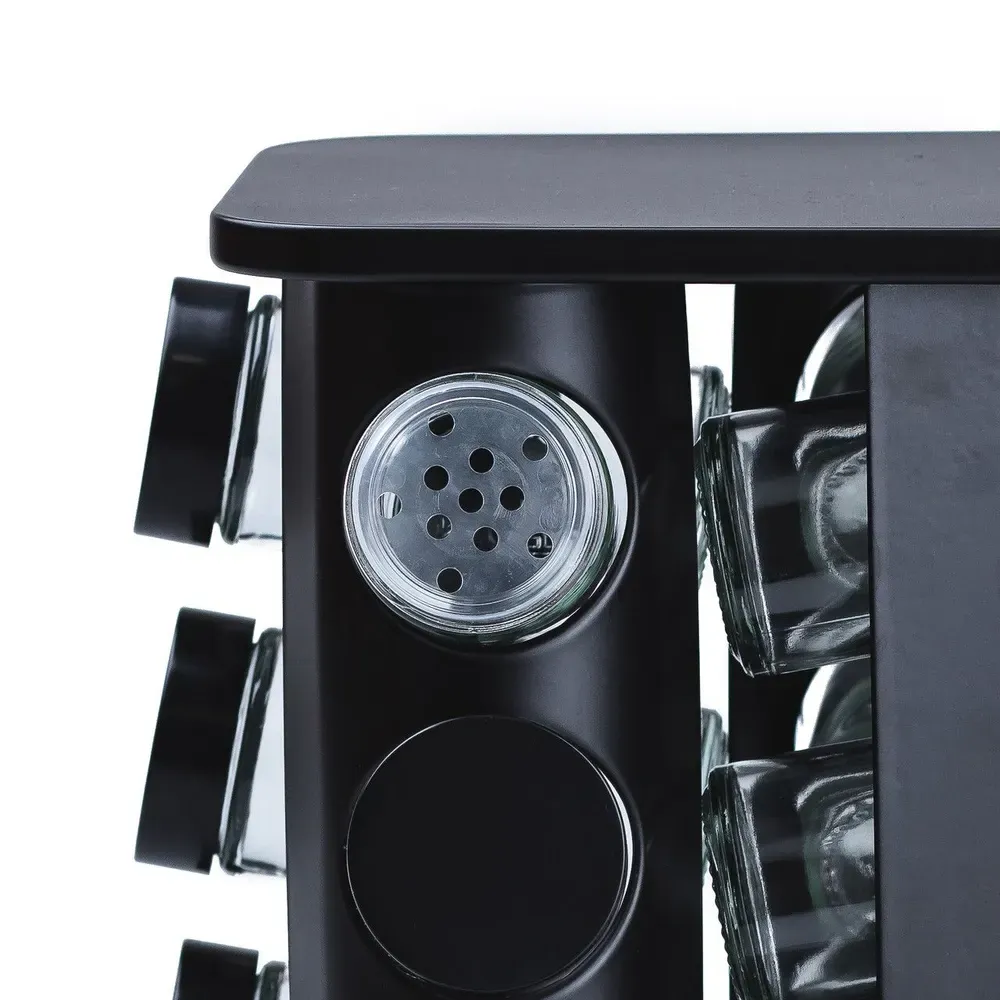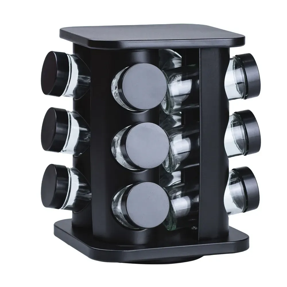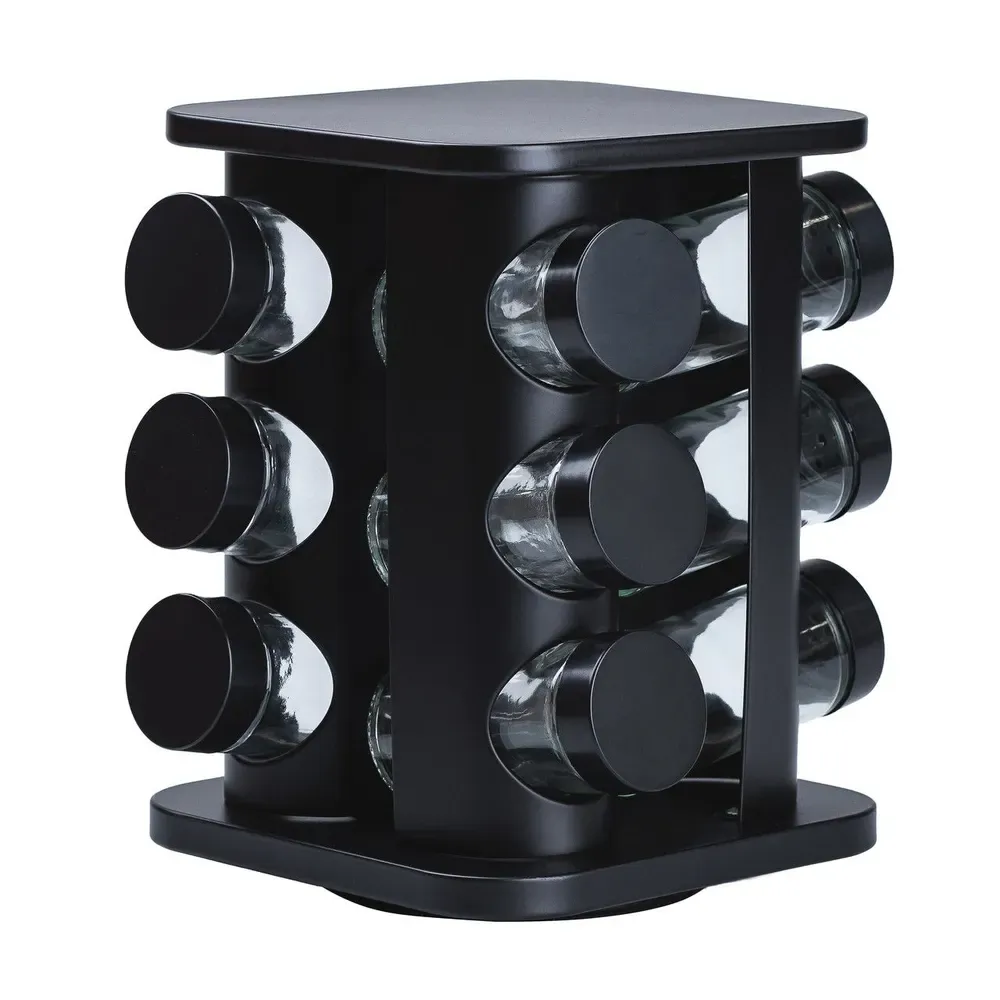 Набор специй на подставке включает 12 емкостей. Каждая емкость предназначена для удобного хранения и дозировки различных специй. обеспечивая удобство в использовании и порядок хранения специй.