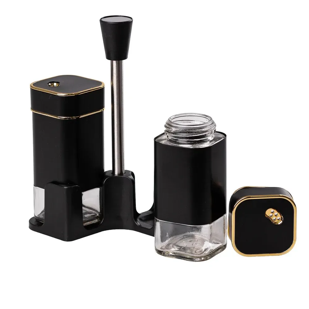 Набор включает в себя два элегантных контейнера для специй, размещенных на эргономичной подставке. Каждый контейнер идеально подходит для хранения и организации различных специй, трав или приправ, придавая вашим блюдам неповторимый вкус и аромат. Кроме того, эстетический дизайн подставки добавляет элемент стиля и элегантности в ваше кулинарное пространство.
