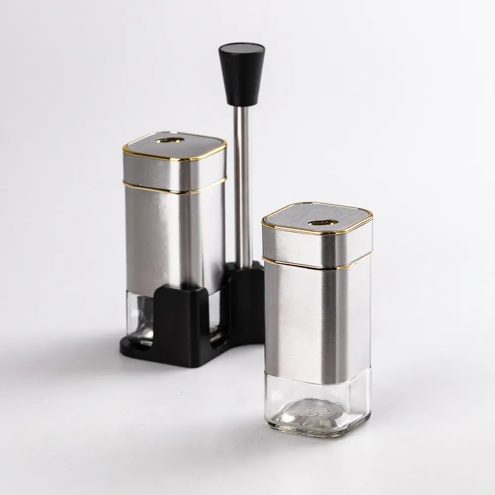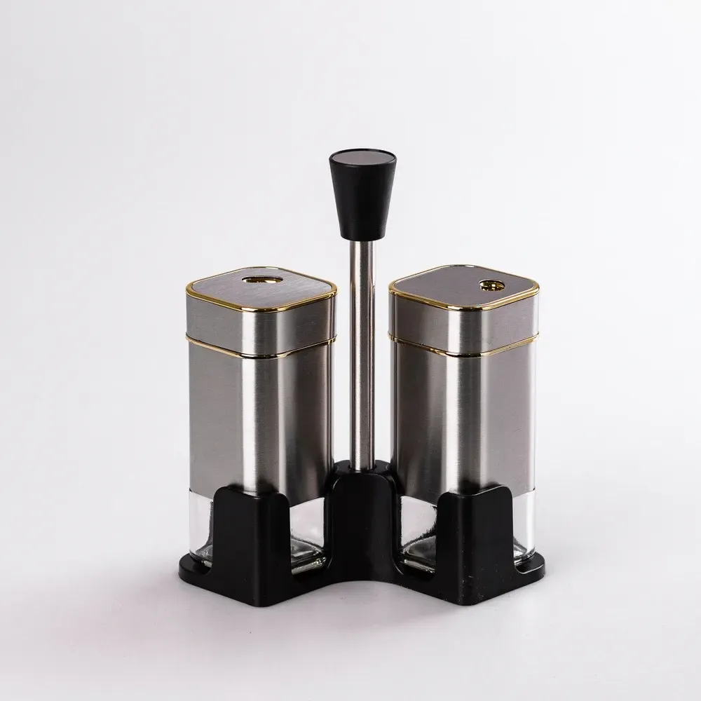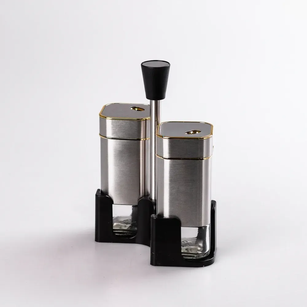 Набор содержит два элегантных контейнера для специй, умело размещенных на эргономичной подставке. Каждый контейнер идеально подходит для хранения и организации различных специй, трав или приправ, придавая вашим блюдам неповторимый вкус и аромат. Кроме того, эстетический дизайн подставки добавляет элемент стиля и элегантности в ваше кулинарное пространство.