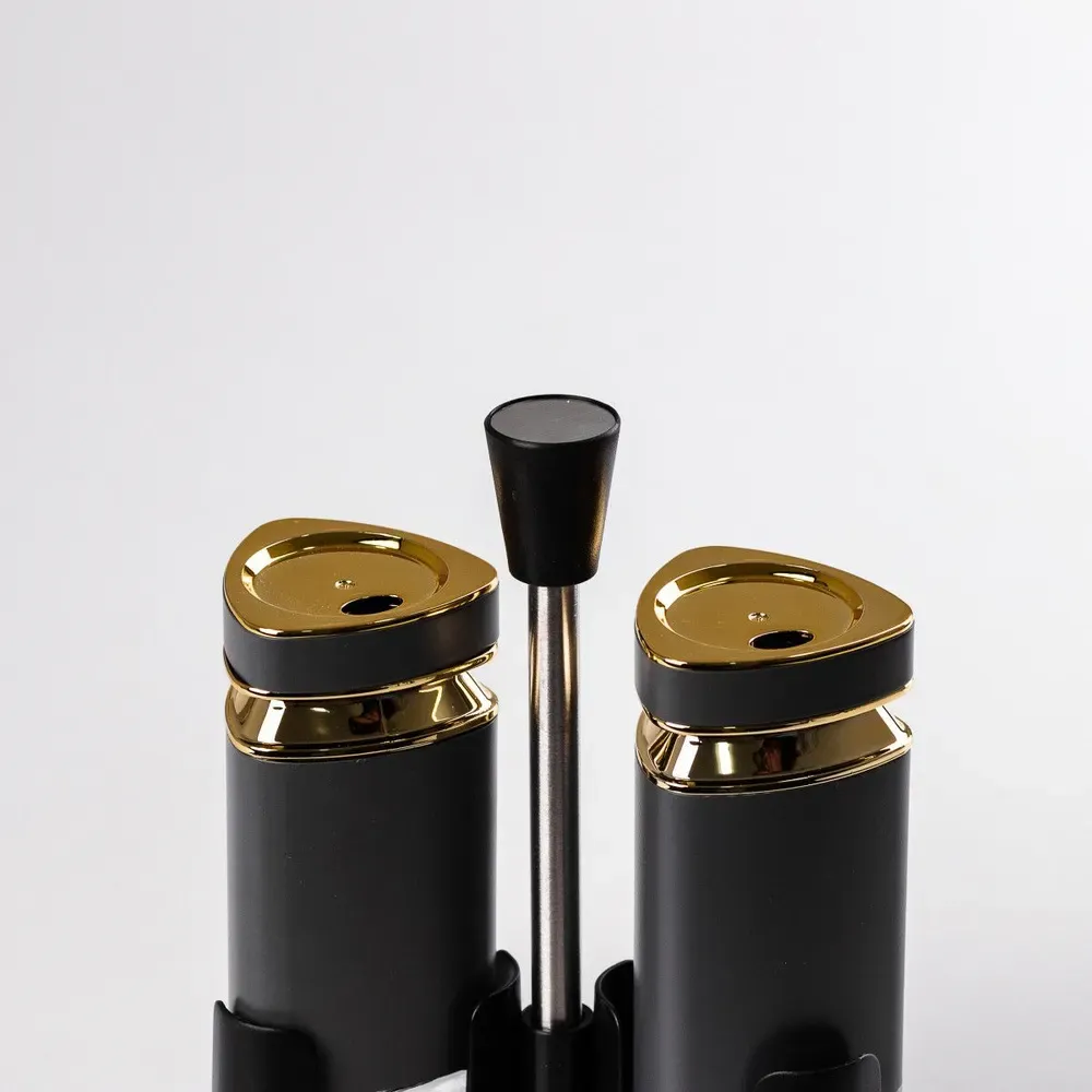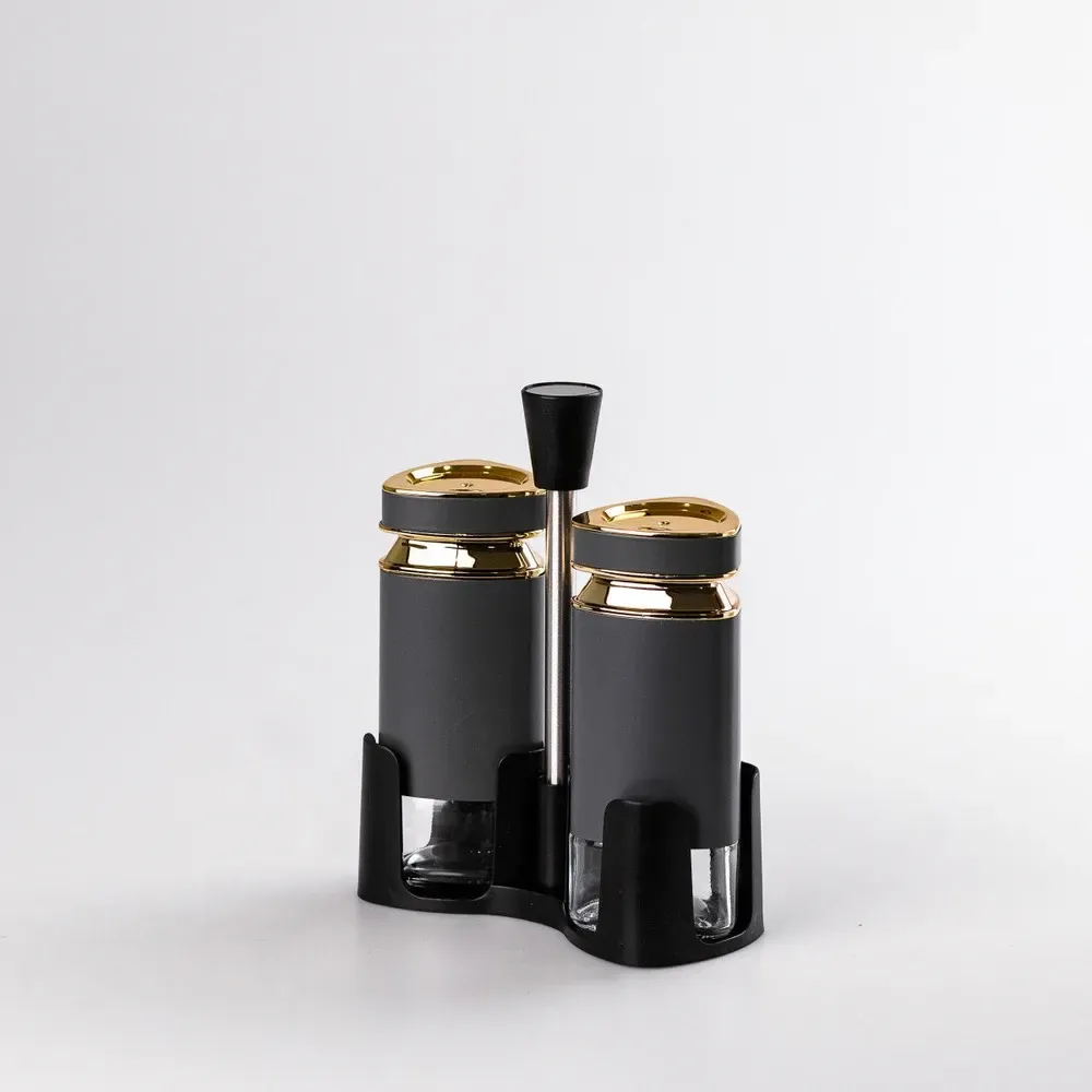 Набор содержит два элегантных контейнера для специй, умело размещенных на эргономичной подставке. . Каждый контейнер идеально подходит для хранения и организации различных специй, трав или приправ, придавая вашим блюдам неповторимый вкус и аромат. Кроме того, эстетический дизайн подставки добавляет элемент стиля и элегантности в ваше кулинарное пространство.