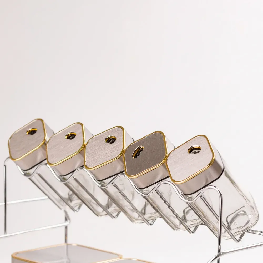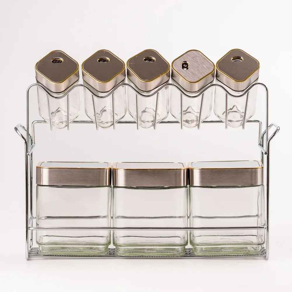 В наборе представлены 5 баночек меньшего размера и 3 баночки большего размера. Металлическая подставка обеспечивает удобное хранение и легкий доступ к различным специям. Этот комплект не только функционален, но и поможет стильно оформить кухню. Характеристики: Тип: набор для специй >Количество: 8 шт