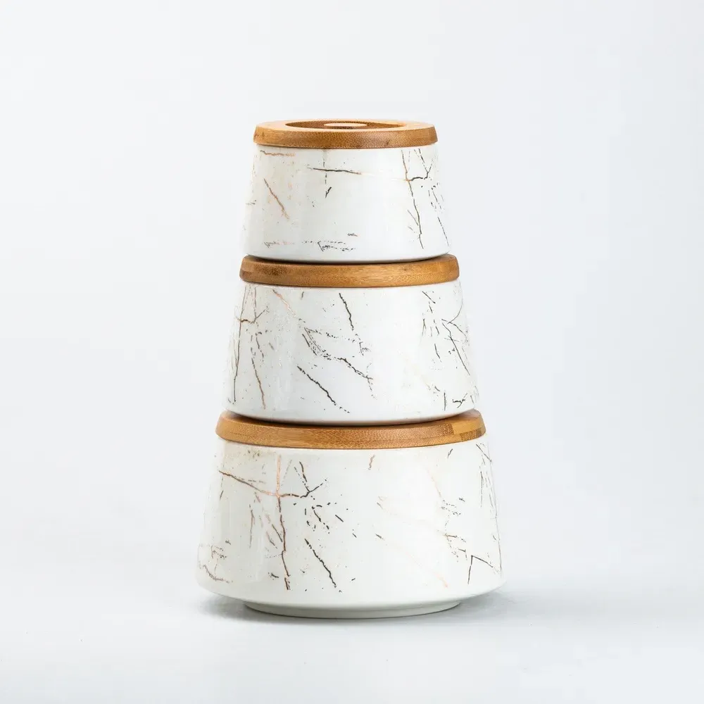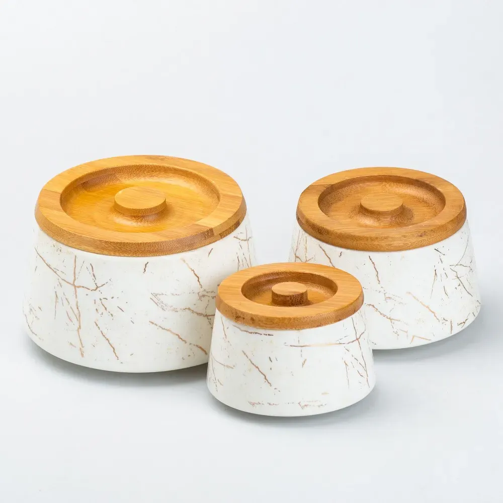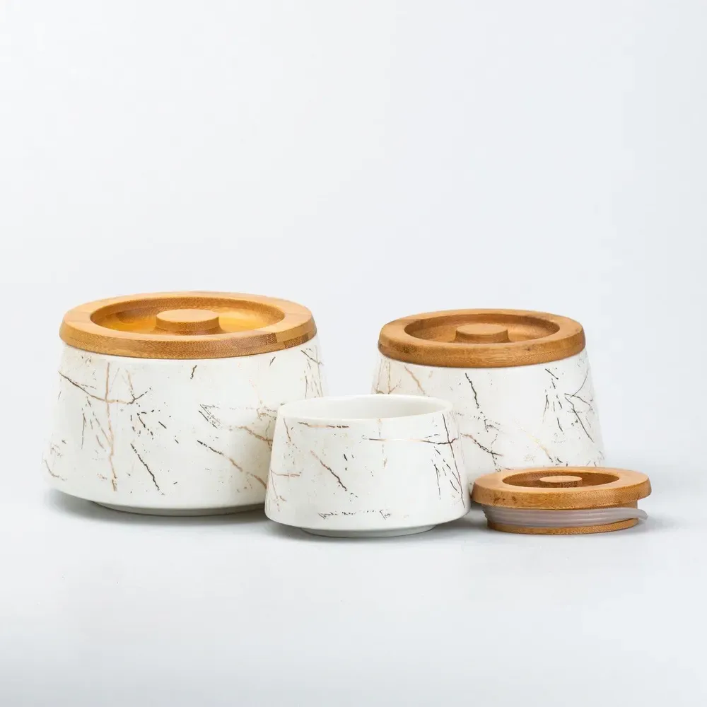 - Экологичность: керамика и бамбук - безопасные и натуральные материалы. Герметичность: бамбуковые крышки плотно закрываются, сохраняя аромат специй.