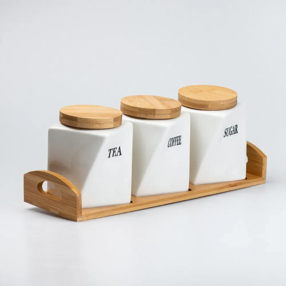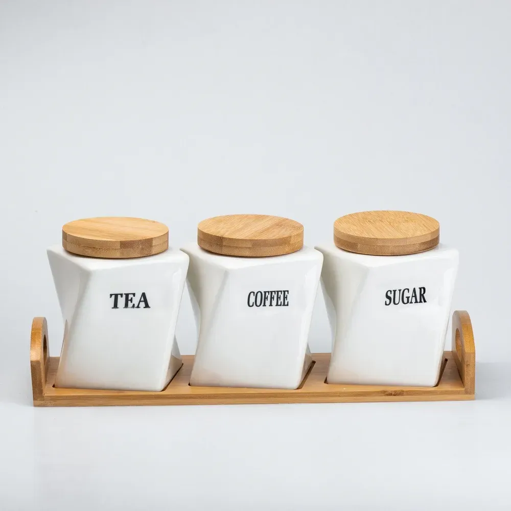 - Стильный дизайн: лаконичный дизайн банок и подставки впишется в любой интерьер кухни.