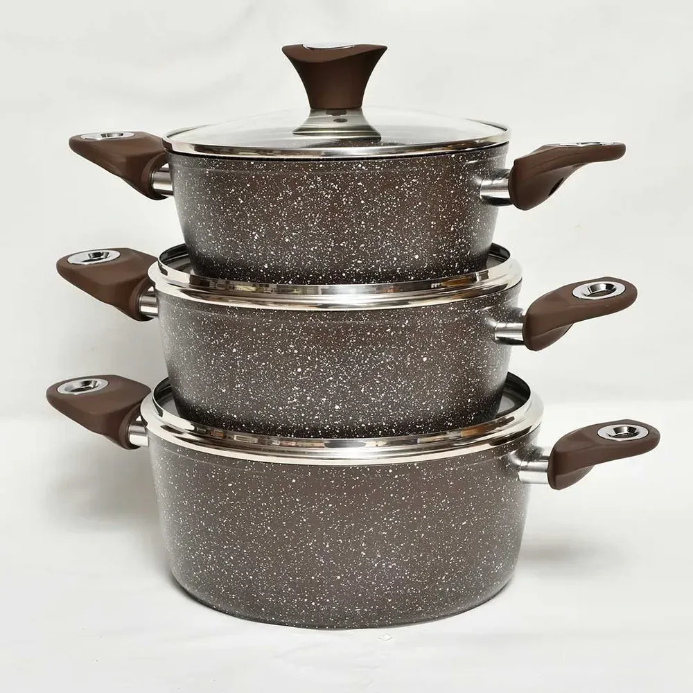 Набор кастрюль с антипригарным гранитным покрытием и толстым дном 2.5/3.5/4.5 л (HP652)