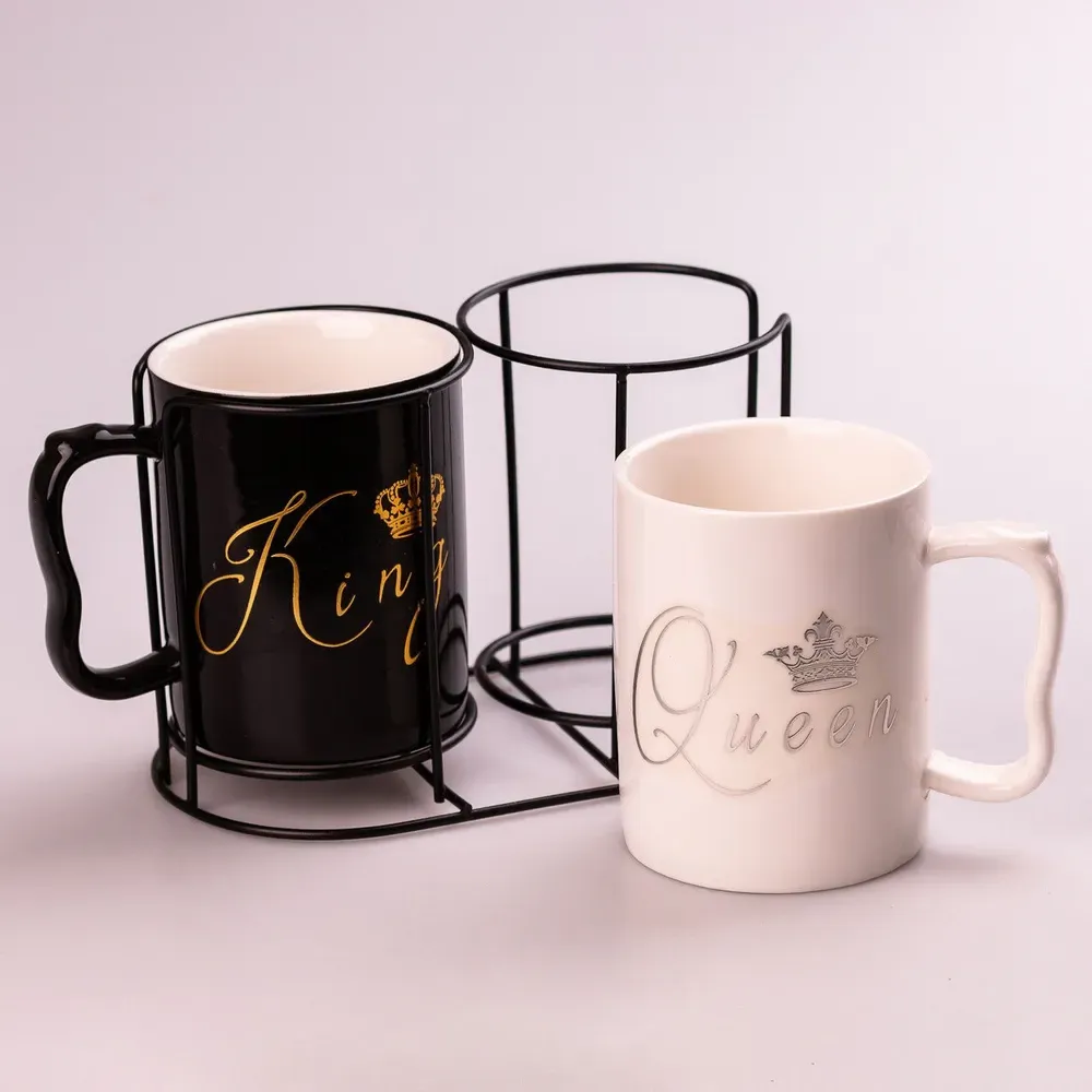 Набор керамических чашек 400 мл Queen&King с подставкой 2 штуки (HPCYA4456)