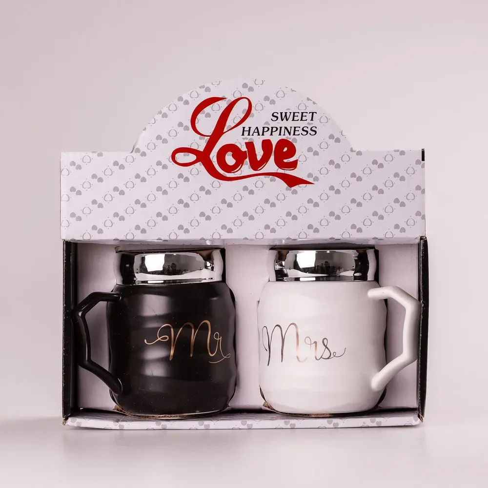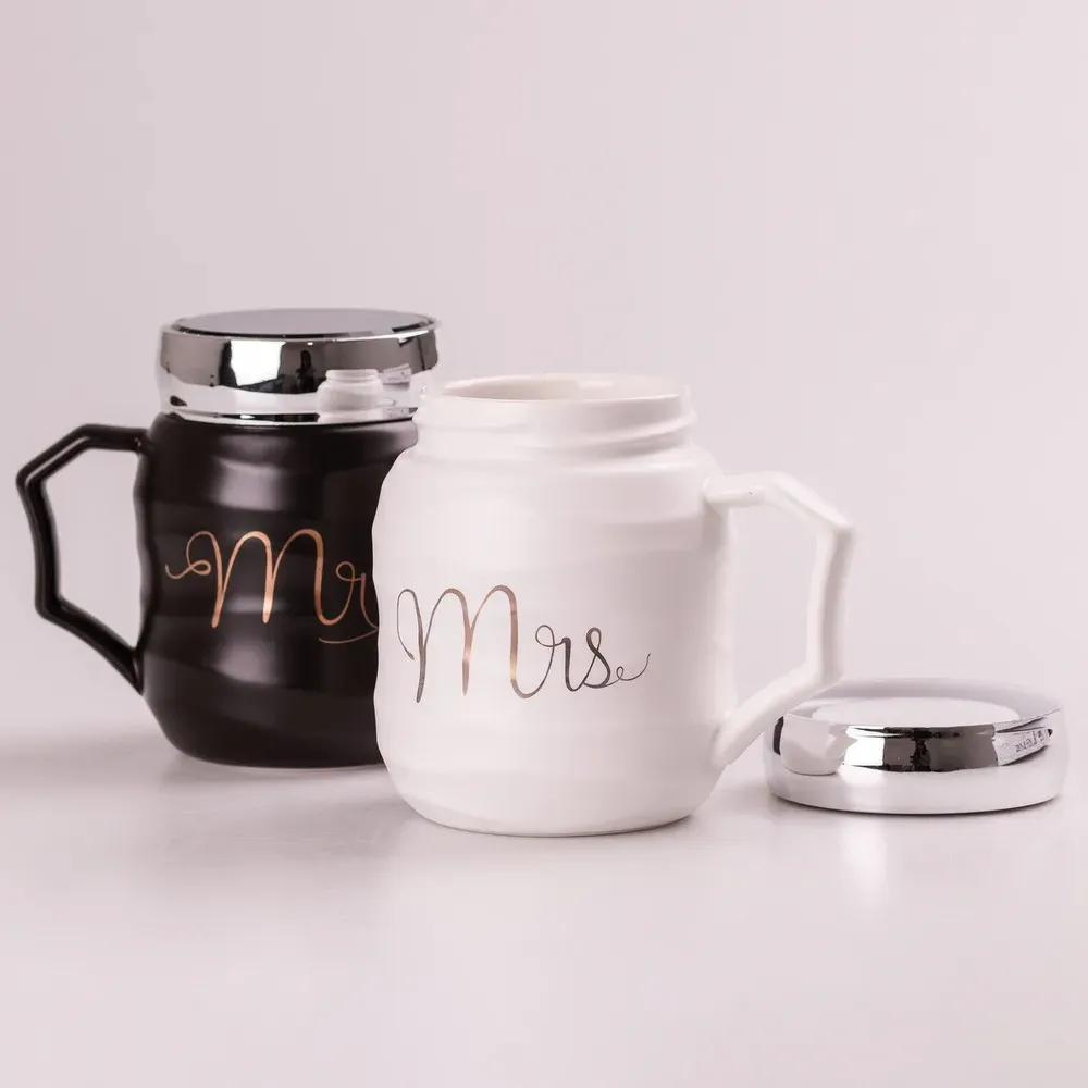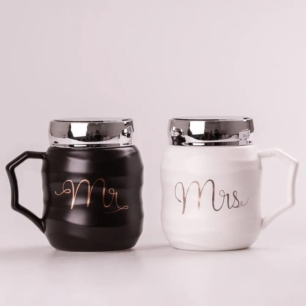 Набор кружок керамических 450 мл Mr&Mrs с крышкой 2 штуки (HPCYYDX1292)