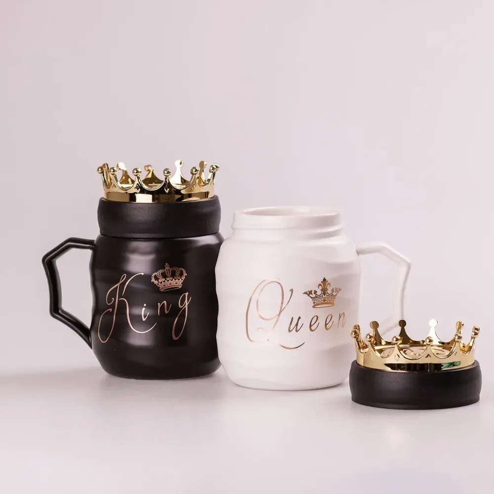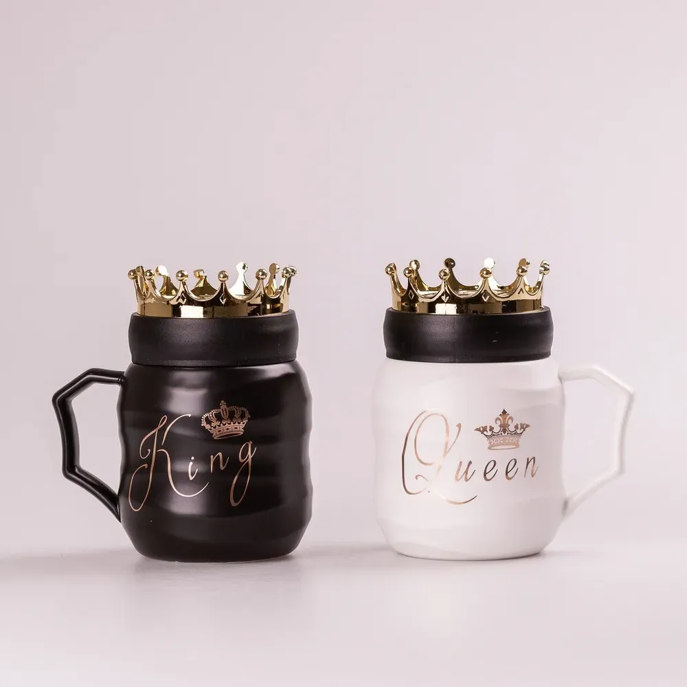 Набор керамических кружок 450 мл Queen&King с крышкой 2 штуки (HPCYYDX1291)