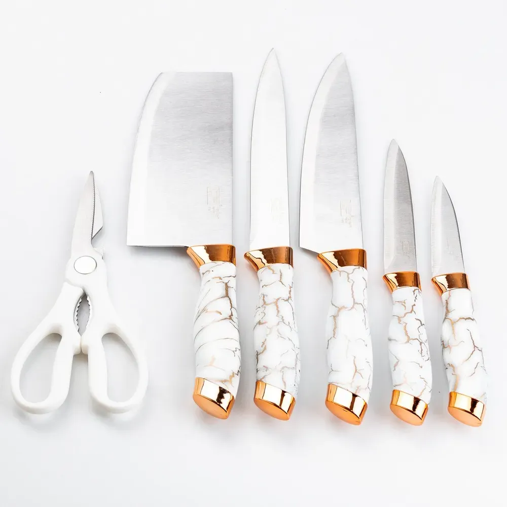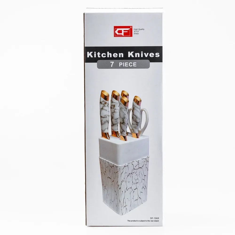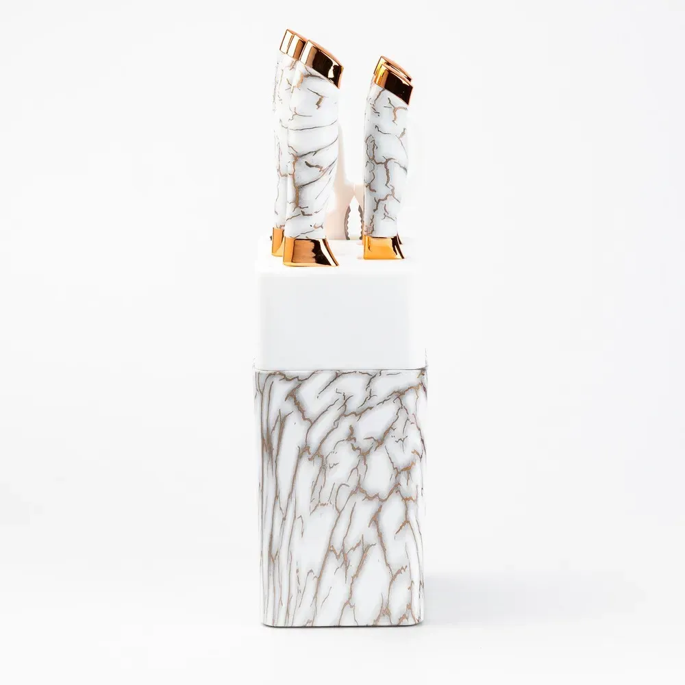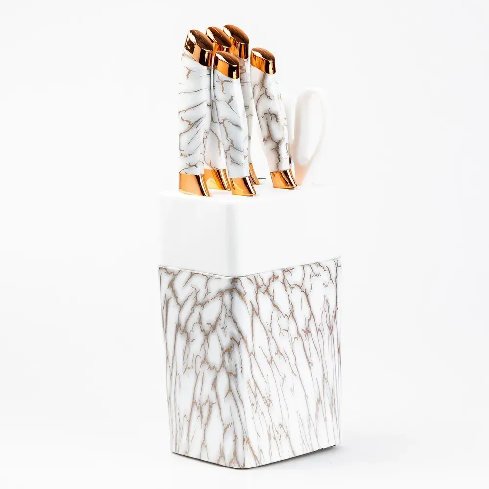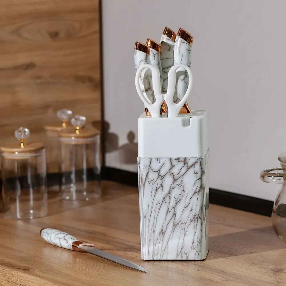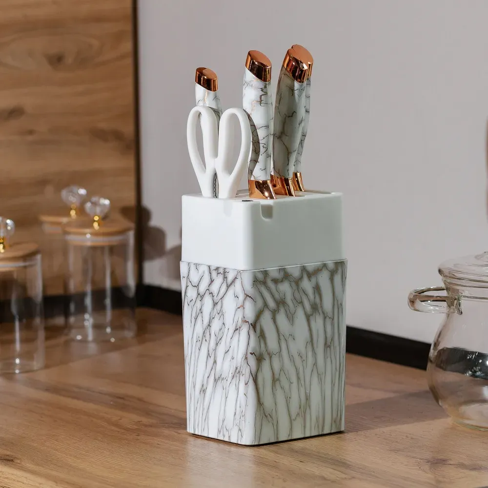 Набор кухонных ножей 5 штук + ножницы на подставке Белый (HP27478W)