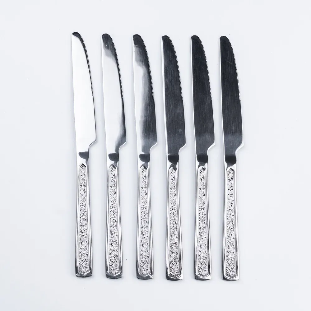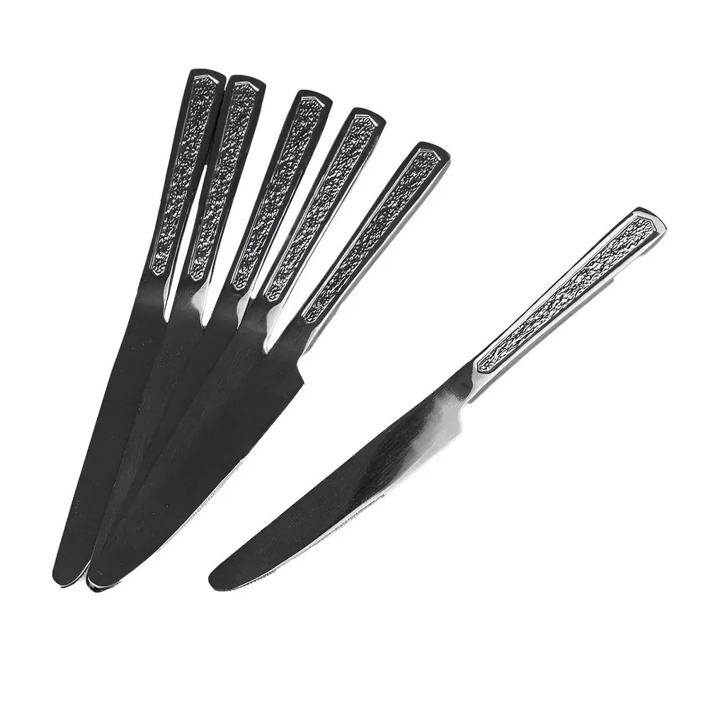 Представляем вашему вниманию элегантный и функциональный набор столовых ножей из 6 штук изготовленных из высококачественной нержавеющей стали и дополненных гальваническим покрытием для улучшения внешнего вида и защиты от коррозии. Эти ножи станут надежными помощниками на вашем столе, придавая вашим обедам и ужинам изысканный вид. Гальваническое покрытие придает уникальный стиль и блеск, делая этот набор не только начинкой, но и элементом декора на вашем столе. Каждый нож в этом наборе тщательно разработан с учетом эргономики и удобства использования. Независимо от того, готовите ли вы ежедневные обеды или устраиваете праздничный вечер, этот набор столовых ножей поднимет вашу сервировку на новый уровень.