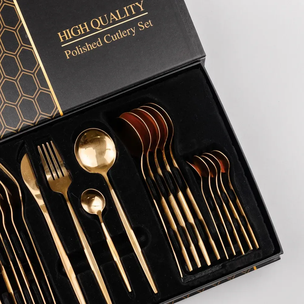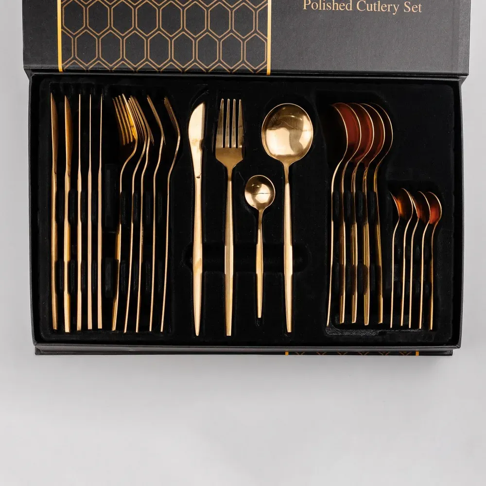 Набор столовых приборов из нержавеющей стали на 6 персон 24 штук Золотистый (HP9698)