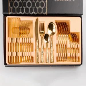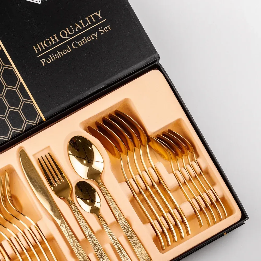 Набор столовых приборов из нержавеющей стали в золотом на 6 персон 24 штуки (HP9693)