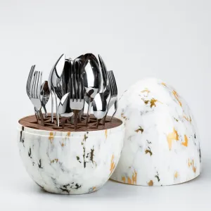Набор столовых приборов на 6 персон из нержавеющей стали 24 штуки с подставкой "Яйце" Мармур (HP7885)