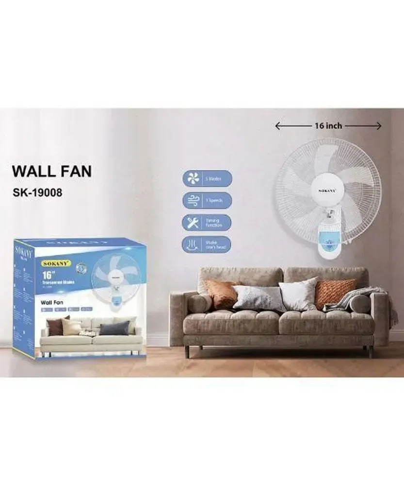 Настенный бытовой вентилятор 3 скорости 5 лопастей Sokany (SK19008)