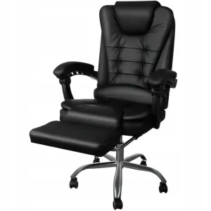 Офісне комп'ютерне крісло Primaveo з підніжкою | Еко-шкіра, Чорне (G1137)