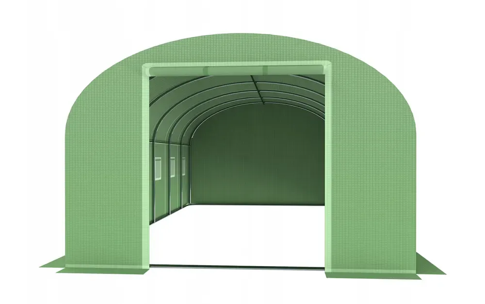 Металлические оцинкованные профили с двух сторон создают устойчивую конструкцию и защищают от коррозии. ПЭ пленка с УФ-фильтром = 4, вес 140г/м2 со встроенной зеленой армирующей сеткой.