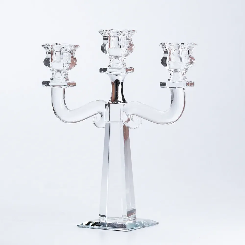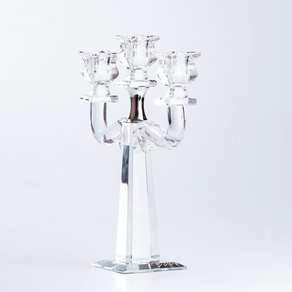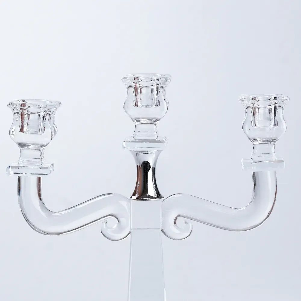 Подсвечник канделябр на 3 свечи стеклянный высокий (HP36562)