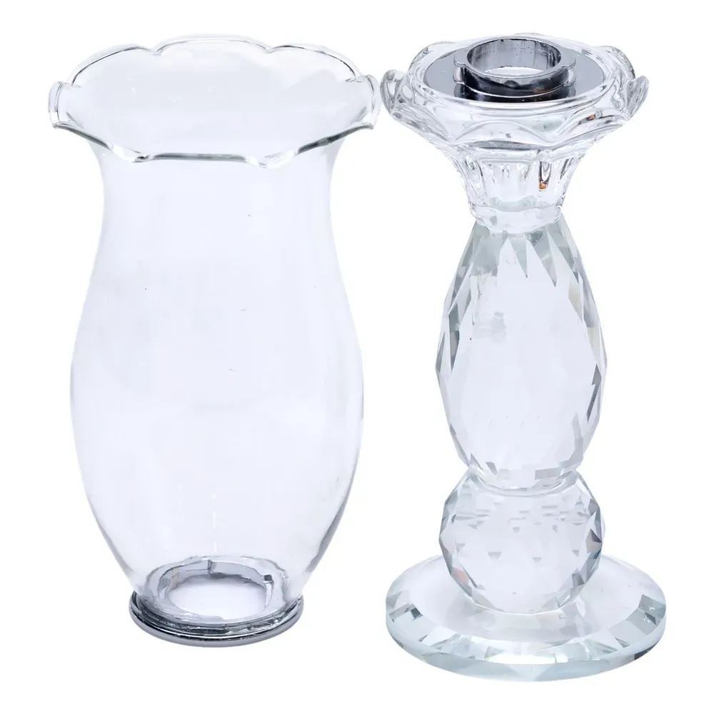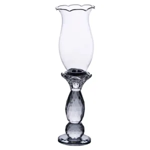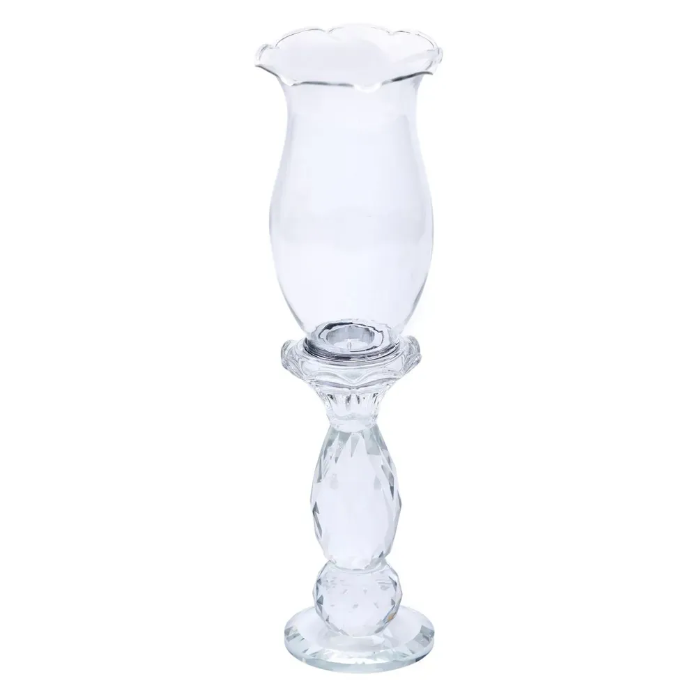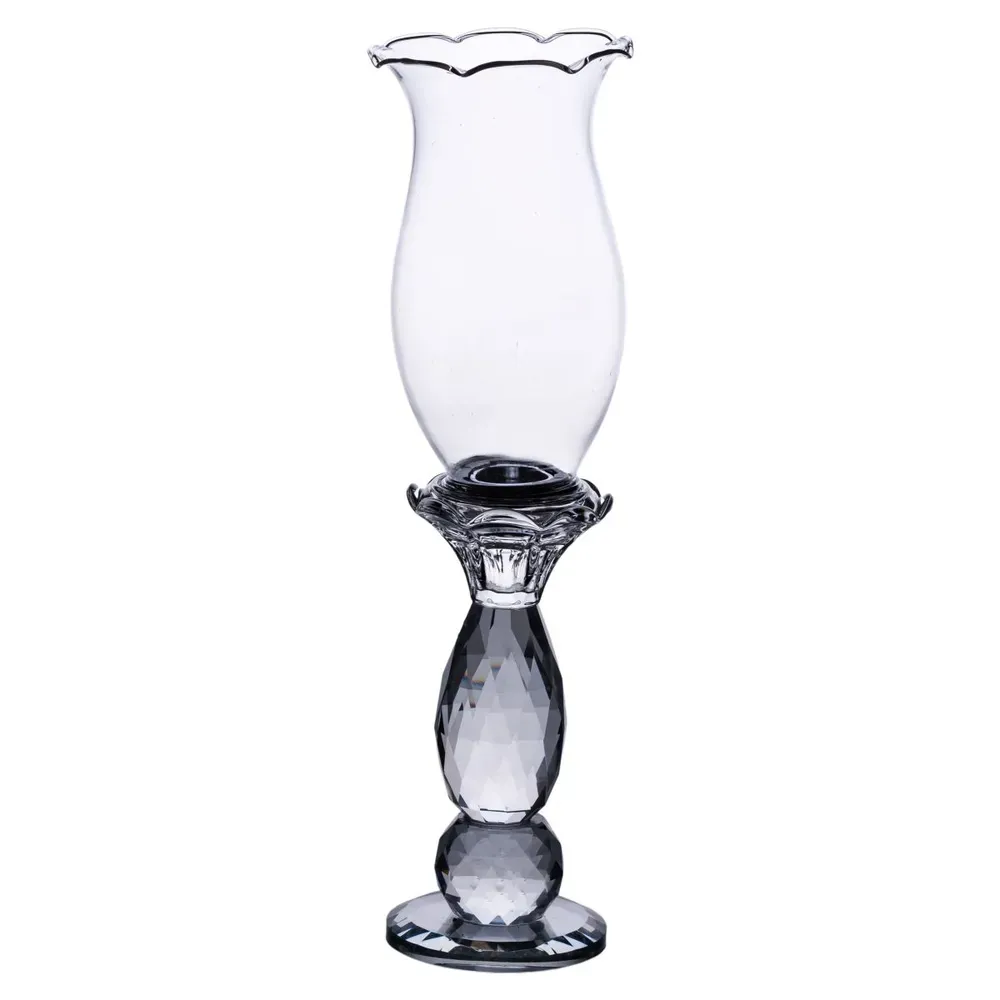 Цей свічник виконаний з гладкого і якісного скла, що надає йому особливо легкий і повітряний вигляд. Його витончена форма поєднується з класичним стилем, а прозорість робить його універсальним елементом декору для будь-якого інтер'єру. Ніжка свічника складена з двох скляних сфер, які з'єднані між собою і плавно переходять у стійку круглу основу. Уся конструкція має цілісний, гармонійний і витончений вигляд. Верхня частина - це високий скляний плафон з хвилеподібним краєм, який нагадує пелюстки квітки і красиво розсіює світло. Основні характеристики: Матеріал: скло; Висота: 27.5 см; Діаметр основи: 7 см; Діаметр під свічку: 5 см; Глибина: 11 см; Колір: прозорий. Для чого підійде? Декор будинку - витончений елемент для вітальні, спальні або обідньої зони. Романтична атмосфера - м'яке мерехтливе полум'я в поєднанні з вишуканим склом створить теплий затишок. Сервірування столу - відмінно впишеться в святкове оздоблення, чи то весілля, чи то ювілей, чи то новорічна вечеря. Подарунок - стильний вибір для любителів витонченого інтер'єру.
