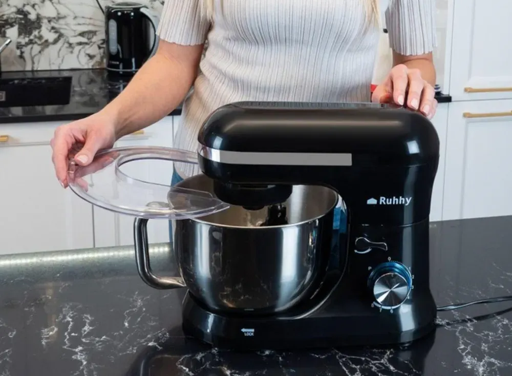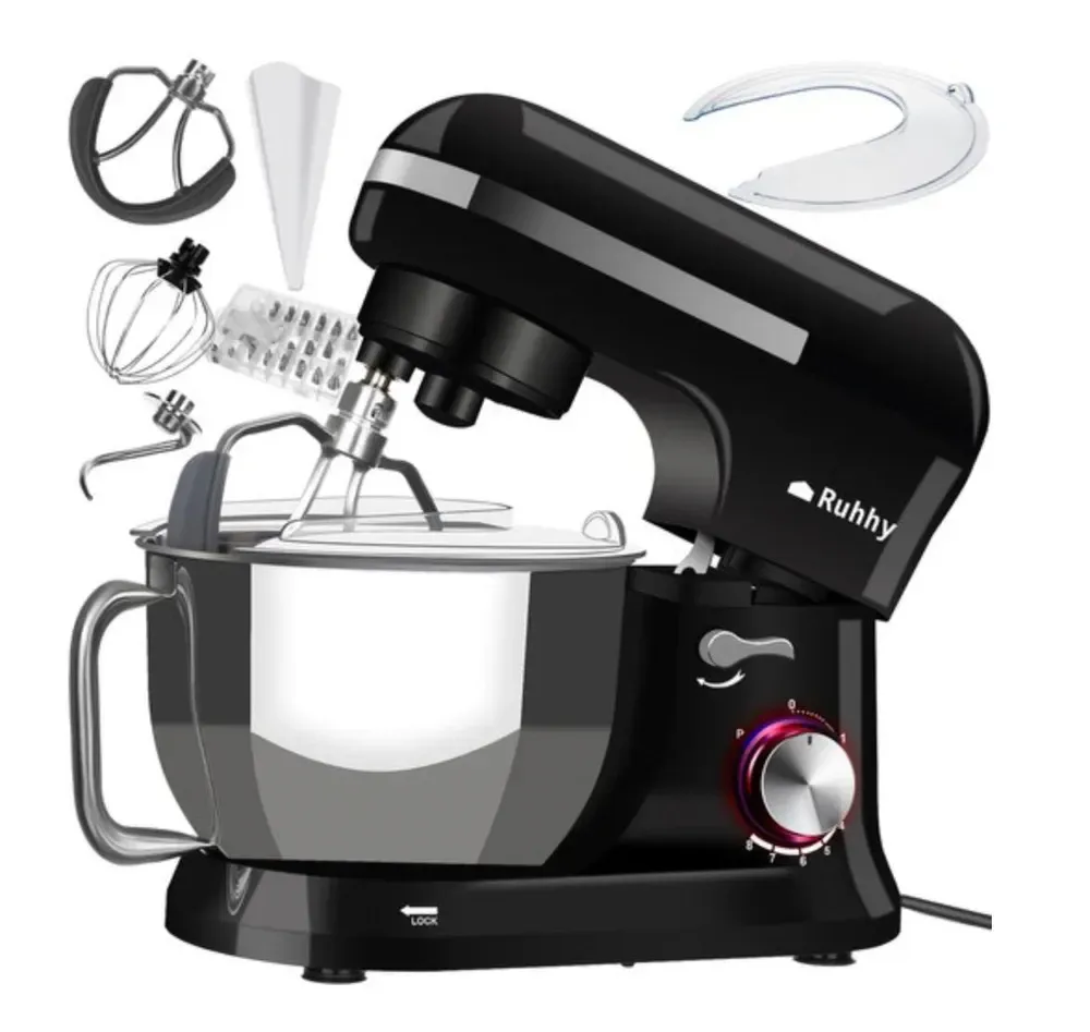 • БОЛЬШАЯ чаша на 4,5 литра - машина имеет чашу на 4,5 литра, которая оснащена крепкой ручкой, чтобы облегчить вам работу и извлечение содержимого. Она изготовлена из нержавеющей стали и имеет крышку от брызгов, что позволяет поддерживать ее в чистоте даже при смешивании на самой высокой скорости.