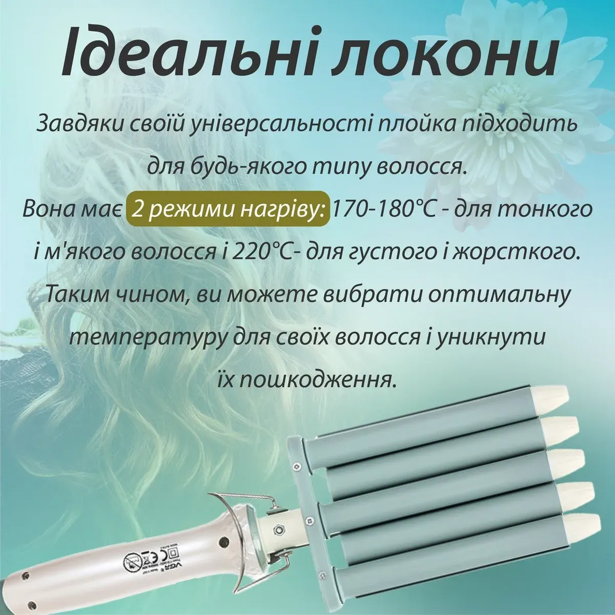 Плойка для волос 5 волн, широкий стайлер для завивки волос голливудские локоны VGR V-597 (V597BL)