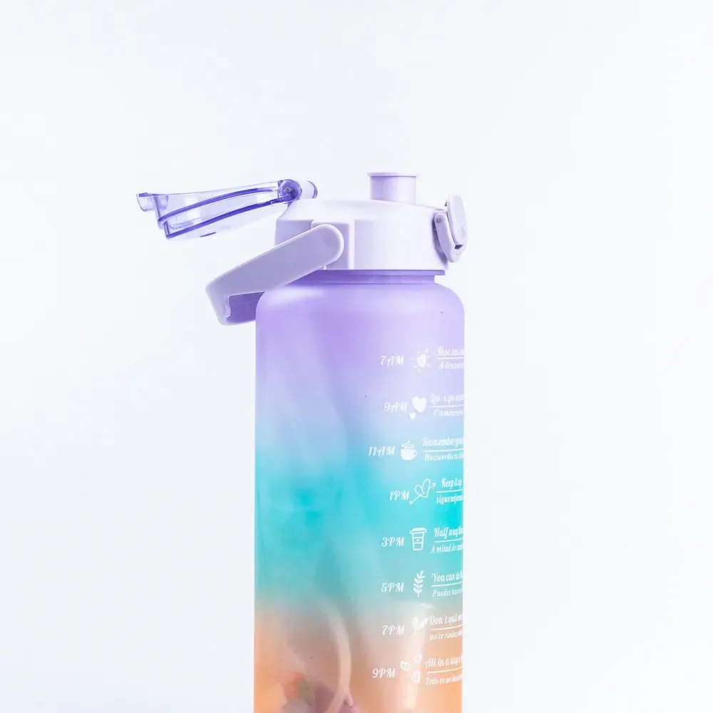 ваших напитков. В комплекте с каждой бутылкой идет специальный дозатор, позволяющий удобно контролировать количество выпитой воды и легко наливать напиток. спортивные занятия. Бутылка на 900 мл отлично подходит для более длительных поездок либо активных дней на открытом воздухе. Бутылка на 2 литра станет незаменимым спутником на пикнике, во время кемпинга или длительных путешествиях. Дизайн бутылок выполнен в стиле радуги, что делает их не только функциональными, но и стильными аксессуарами.