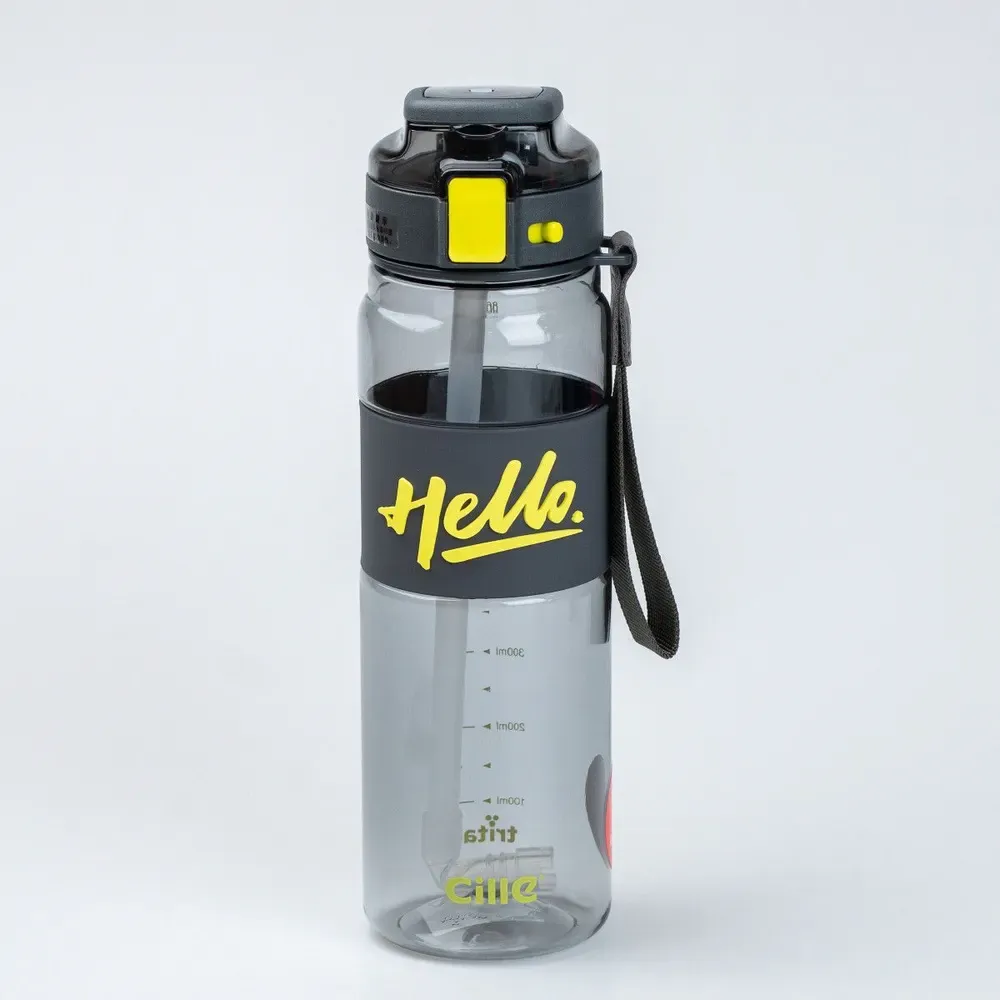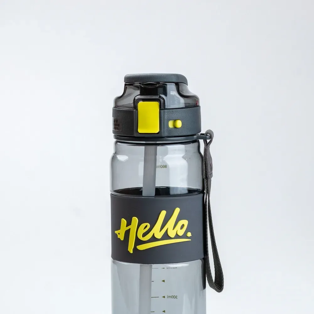Бутылка для воды спортивная 860 мл тритан с ремешком и ручкой Hello Черная (HP17303B)
