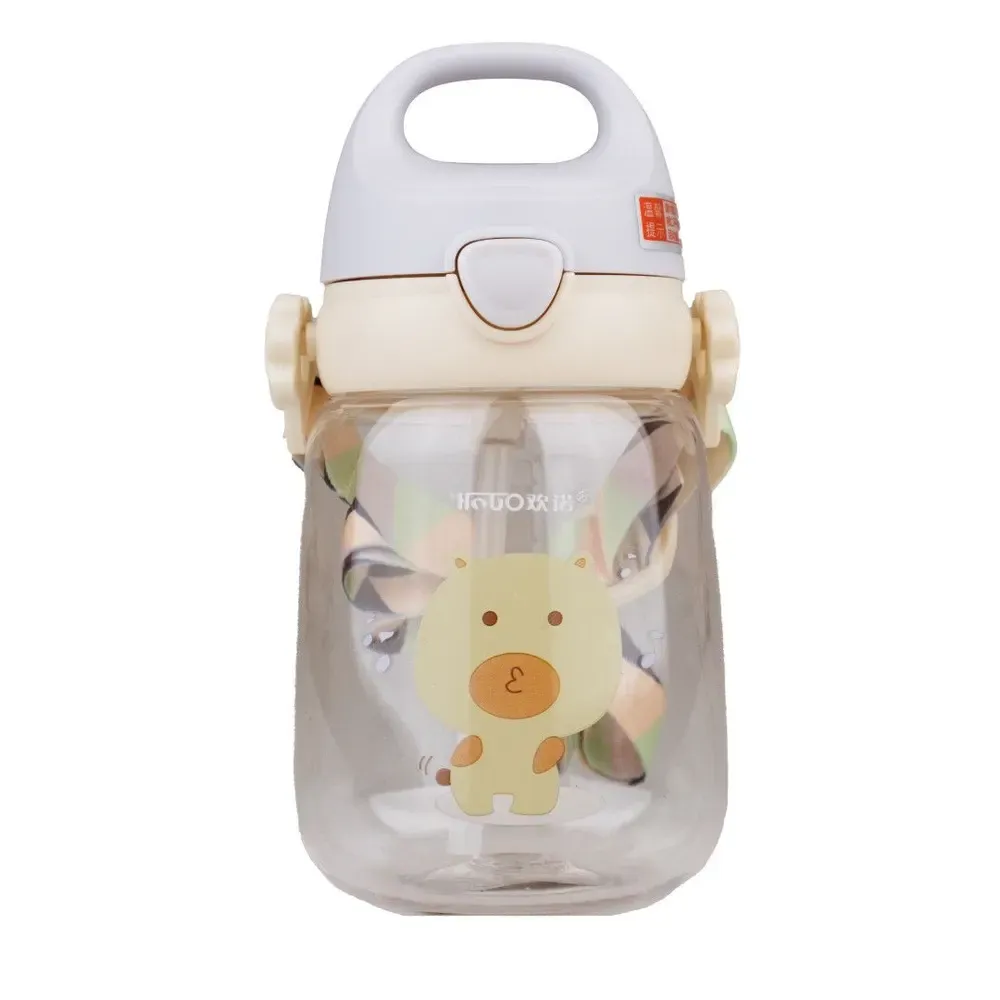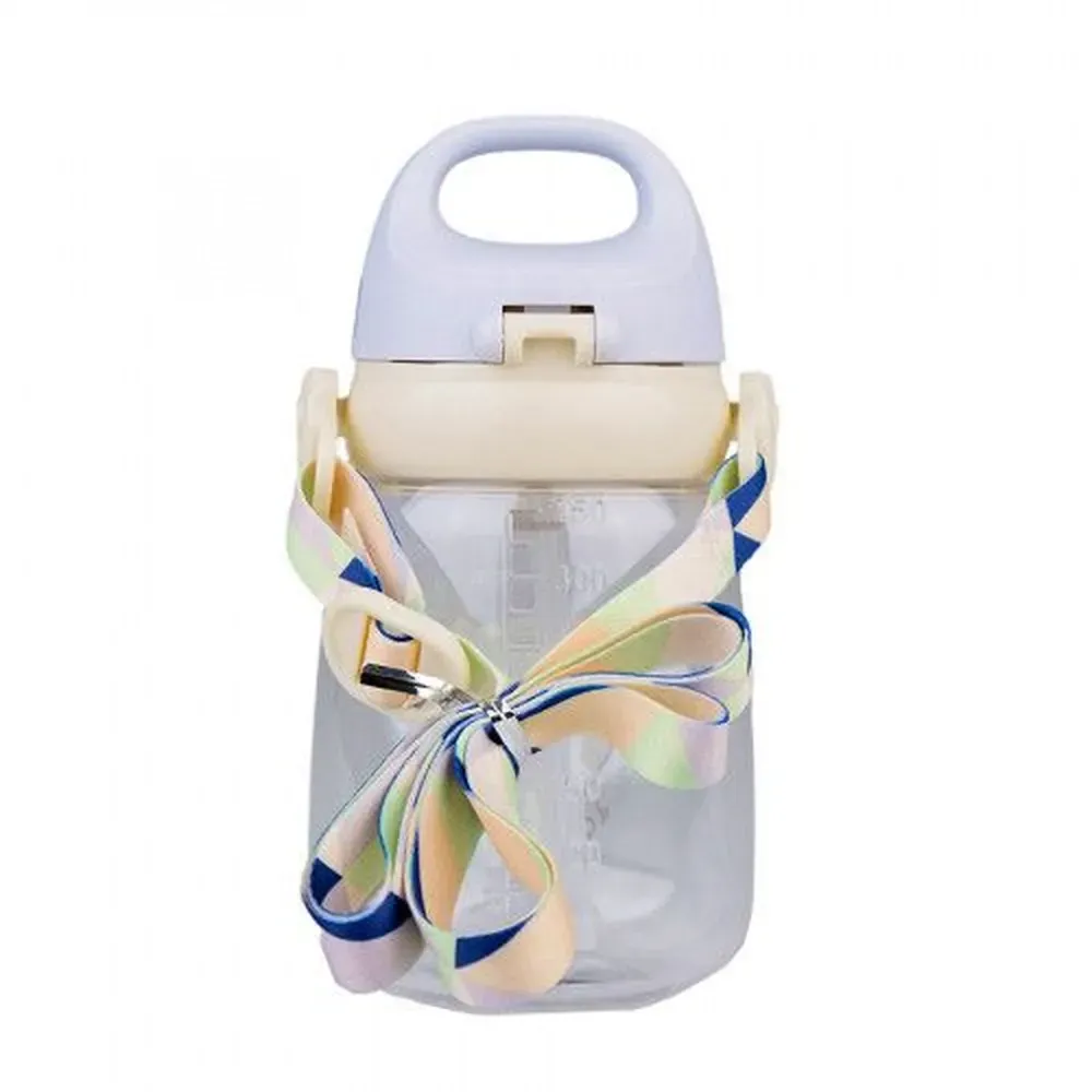 - Интересный дизайн. Прозрачный корпус декорирован милым розовым зайцем, который понравится девочке, а на крышке есть удобная ручка, размер которой соответствует ладони ребенка. Кроме того, бутылка оснащена нейлоновым ремешком с регулируемой длиной, позволяющей носить ее в руках, надеть на шею или повесить на рюкзачок, чтобы освободить руки. Оптимальный объем. 380 мл воды или любимого напитка – отличный вариант для прогулки или похода за покупками. Такой объем жидкости удовлетворит потребности малыша в жаркий день, однако полная бутылка не будет слишком тяжелой для ребенка. Безопасность и удобство использования. Откидная крышка оснащена кнопкой, которая надежно фиксирует ее в закрытом положении, предотвращая случайные протечки, а силиконовая трубочка предотвращает проливку, если малыш только учится пить из чашки. Бутылка изготовлена из экологичных материалов, пластик содержит вредные вещества, она легко моется вручную и в посудомоечной машине. А благодаря яркому дизайну такая бутылка станет любимым аксессуаром вашего малыша.