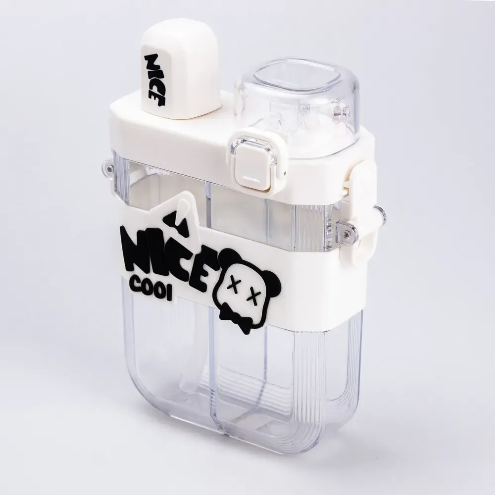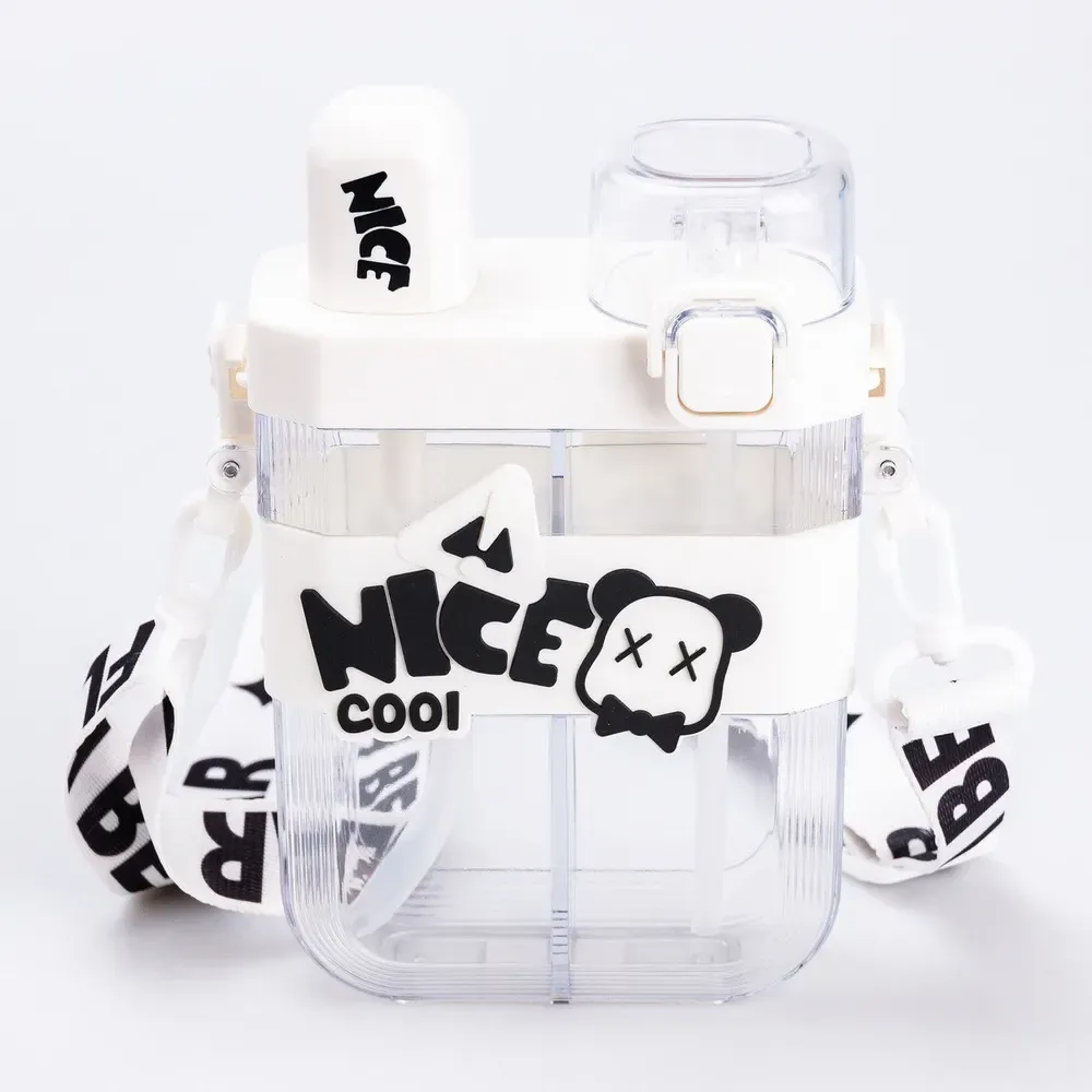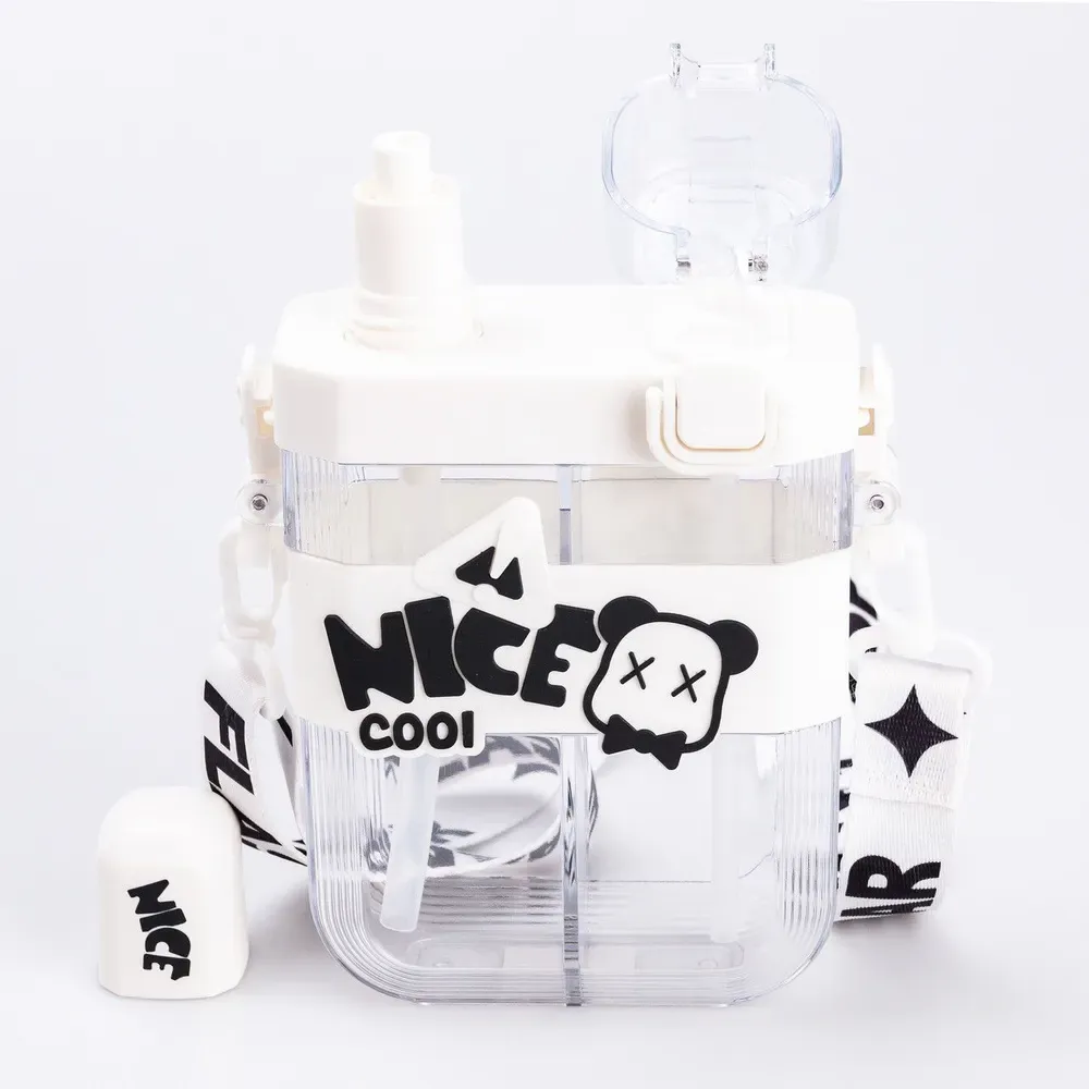 Бутылка для воды с трубочкой пластиковая с ремешком белая бутылочка для воды (HP18311W)