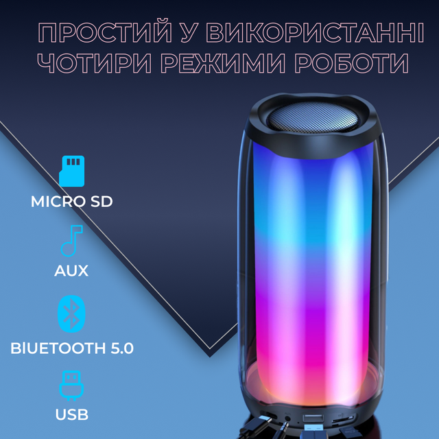 Портативная колонка Bluetooth Pulse 4 с подсветкой USB Type-C/AUX 10 Вт (PULSE4B)