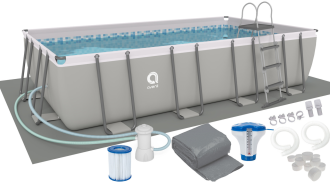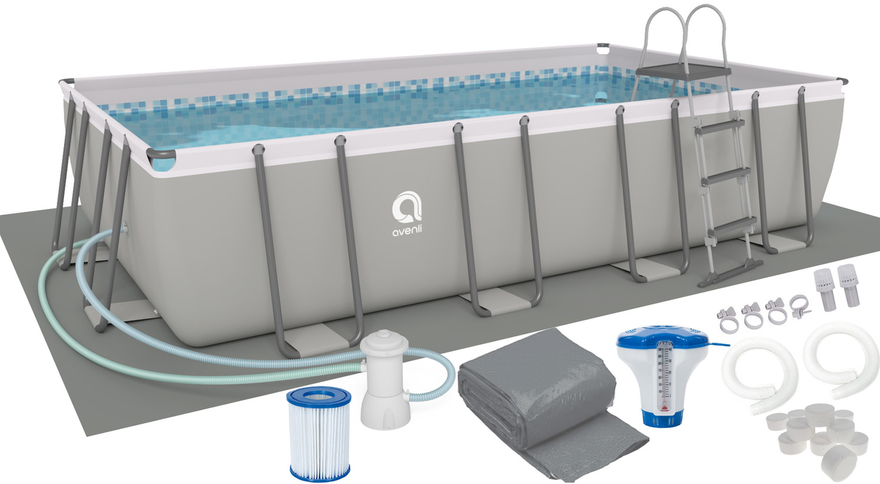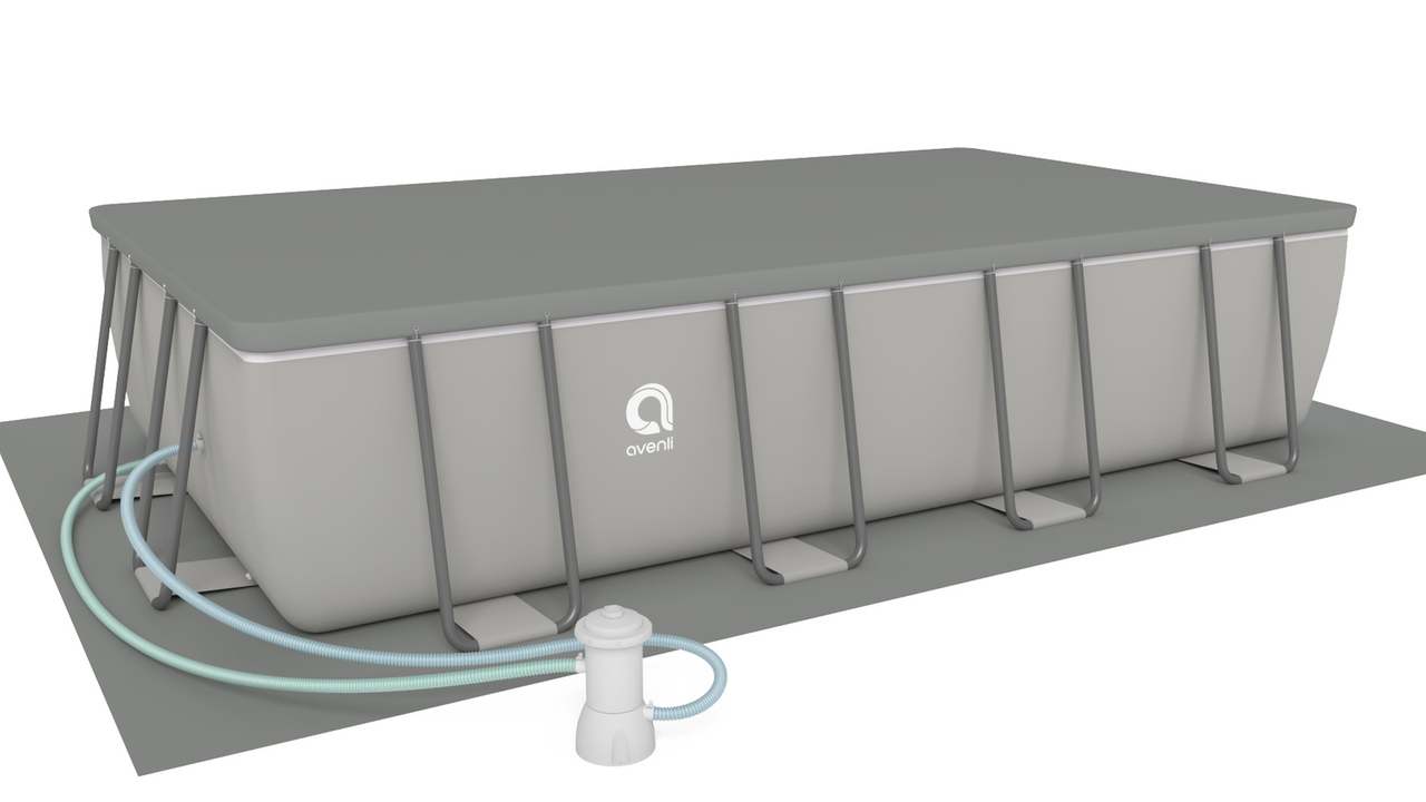 Прямокутний каркасний садовий басейн Avenli (549 × 305 × 122 см) для всієї родини, комплектація 18в1, Сірий (В0029)