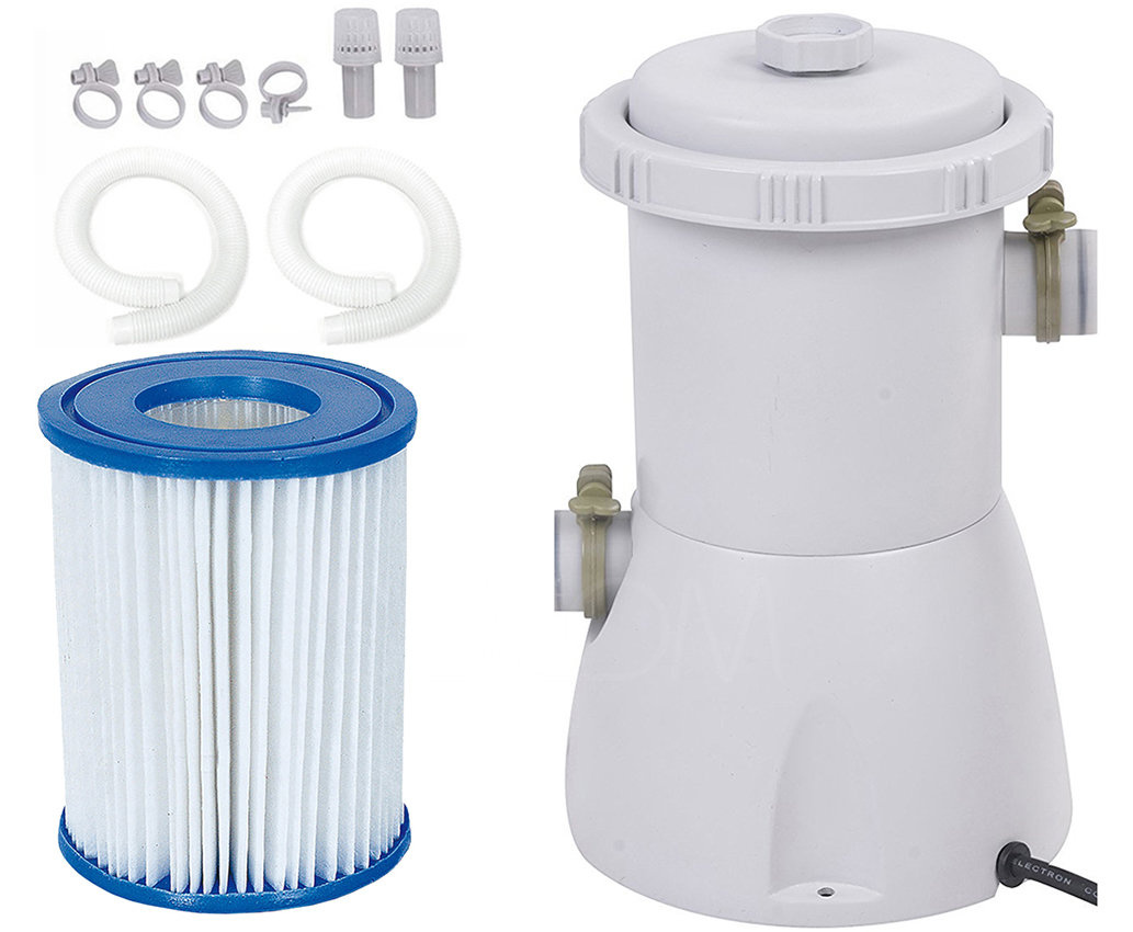 - Проста фільтрація: електричний насос очищає воду від забруднень. У комплекті — змінний картридж-фільтр, який можна промивати.