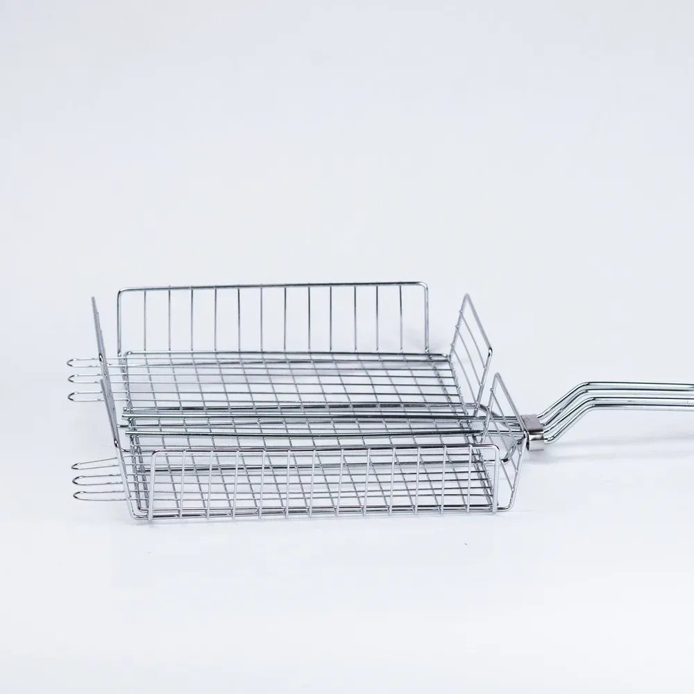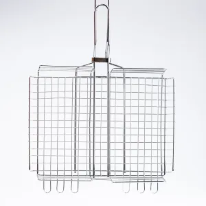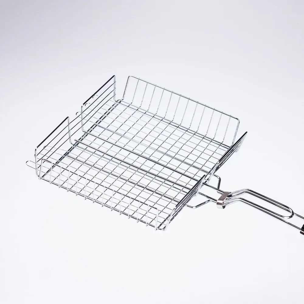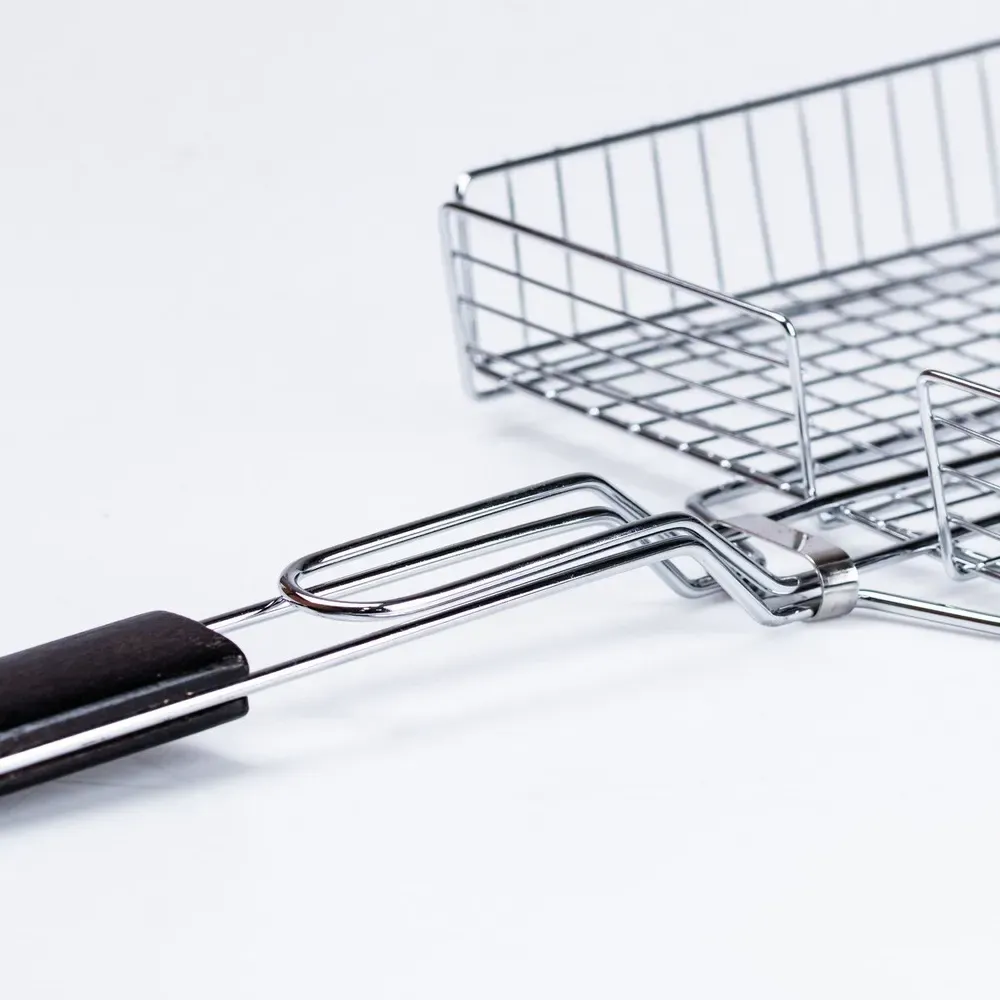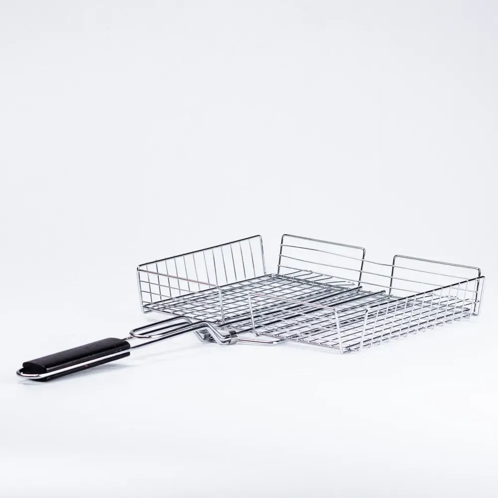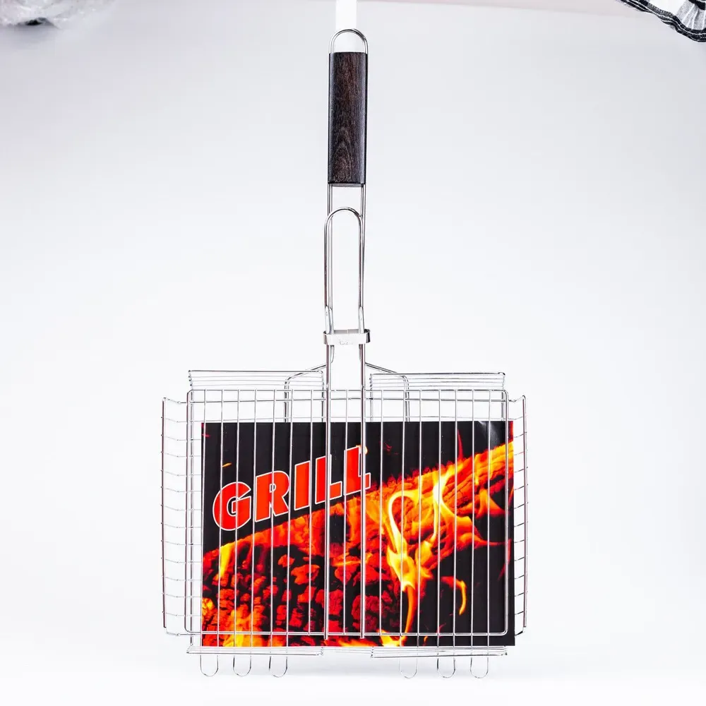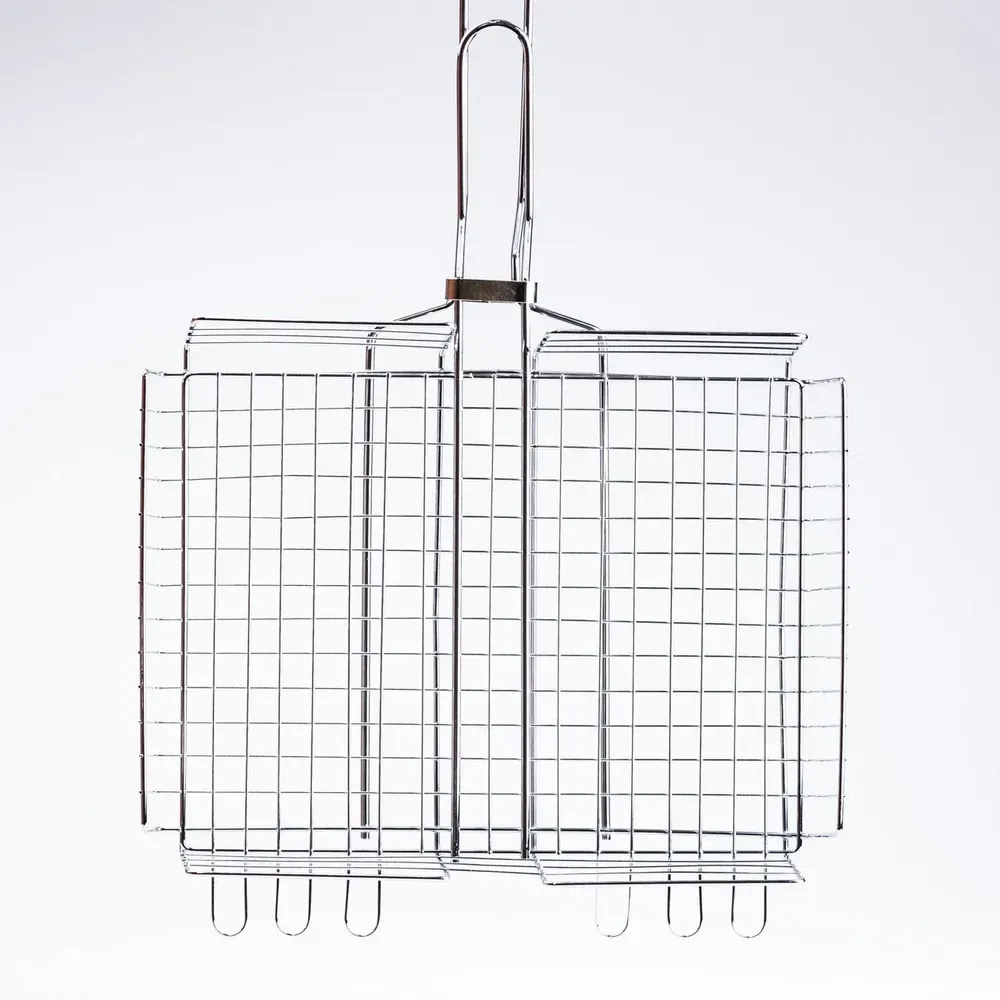 Для использования решетки необязательный мангал - сопротивления для нее можно сделать из подручных средств или обойтись без опоры, ведь ручка достаточно длинная и защищенная накладкой, поэтому можно не бояться обжечь руки. Купить решетку гриль можно с доставкой по всей Украине.