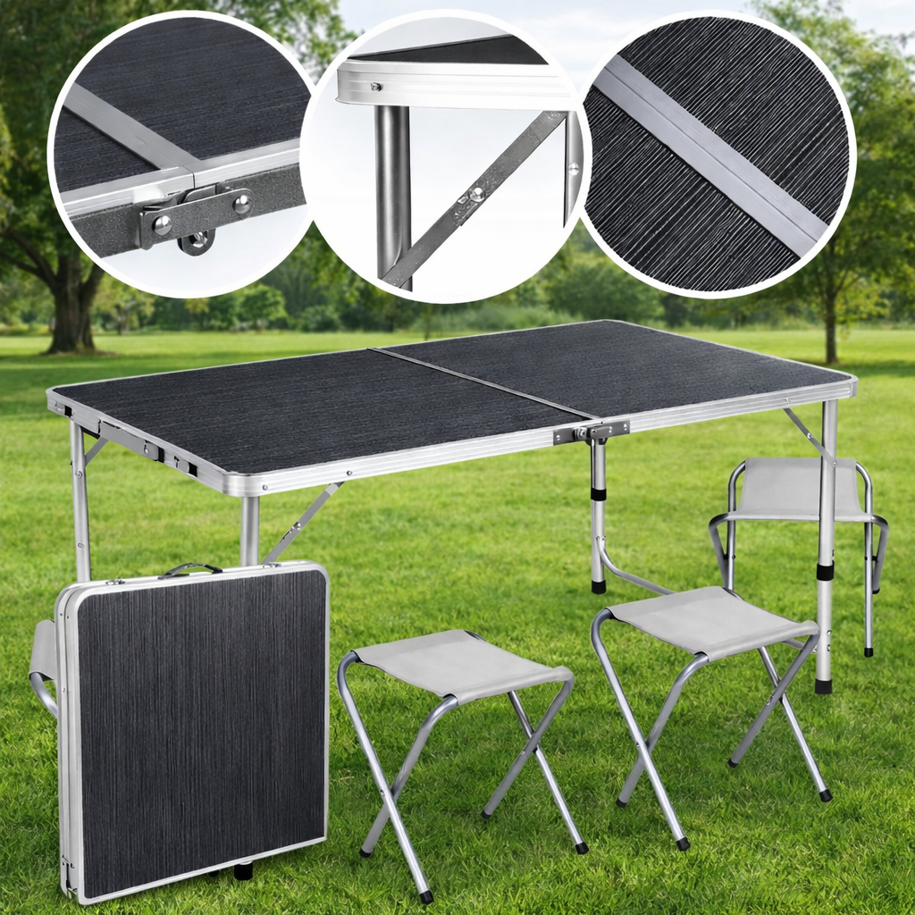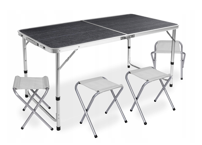 Розкладний туристичний стіл-валіза (120 х 60 см) + 4 стільці, комплект садових меблів, Сірий