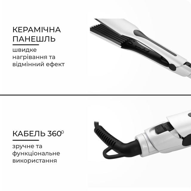 < img alt="" src="https://images.prom.ua/4815887800_w640_h2048_vgr_557_ukr_1.jpg?fresh=1&PIMAGE_ID=4815887800" style="width:280px;"height:2 https://images.prom.ua/4815888143_w640_h2048_1.jpg?fresh=1&PIMAGE_ID=4815888143" style="margin-left:5px;margin-right:5px;width:280px;healt:28 src="https://images.prom.ua/4815888685_w640_h2048_vgr_557_rus_2.jpg?fresh=1&PIMAGE_ID=4815888685" style="width:280px;height:280px"= Создавайте шикарный объём и моделируйте прическу легко. которых можно легко создавать прикорневой объём или моделировать прическу как угодно. Похвастайтесь густыми объемными волосами. Выпрямитель-гофре решает эту проблему очень легко и позволяет добиться хорошего визуального объема ваших волос. Всего за несколько минут вы сможете предоставить волосам шикарный объем, который сохранится на 2-3 дня без проблем.