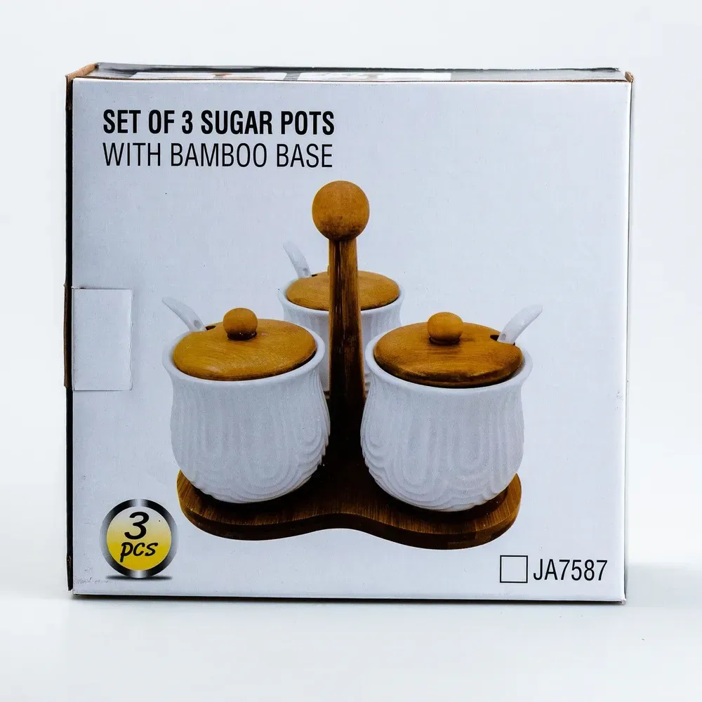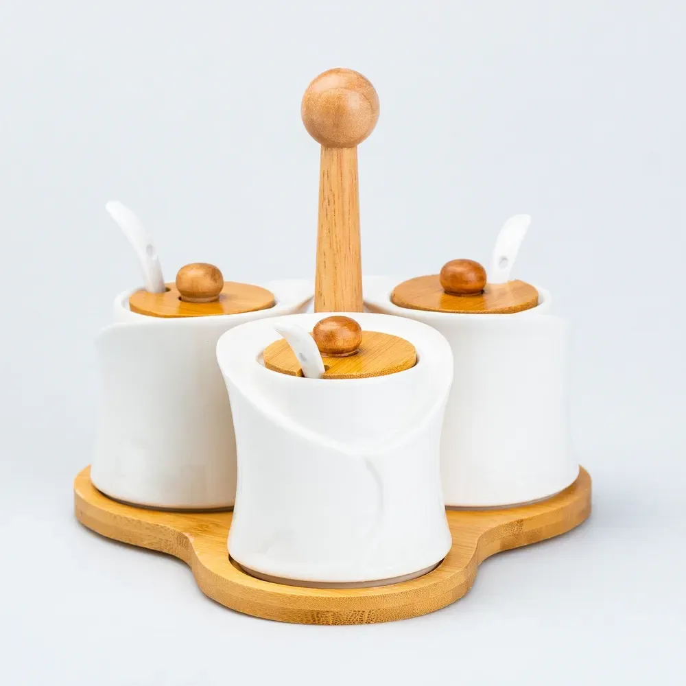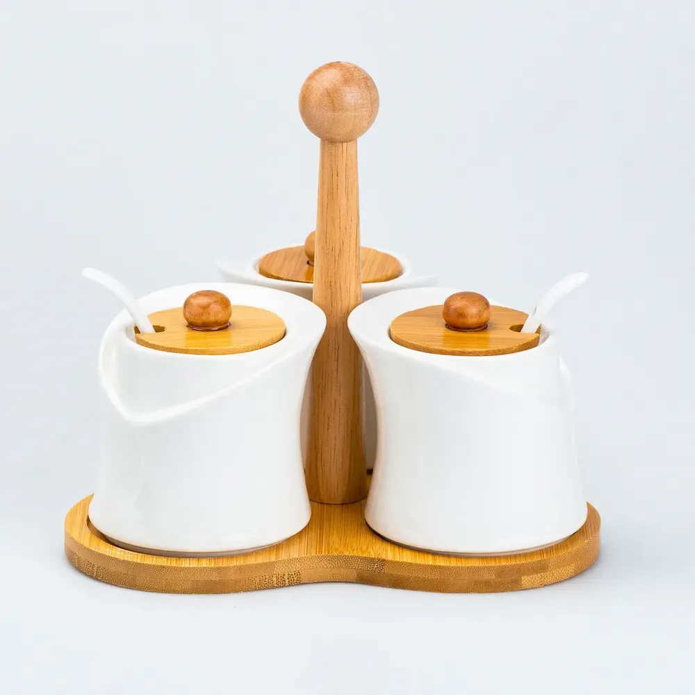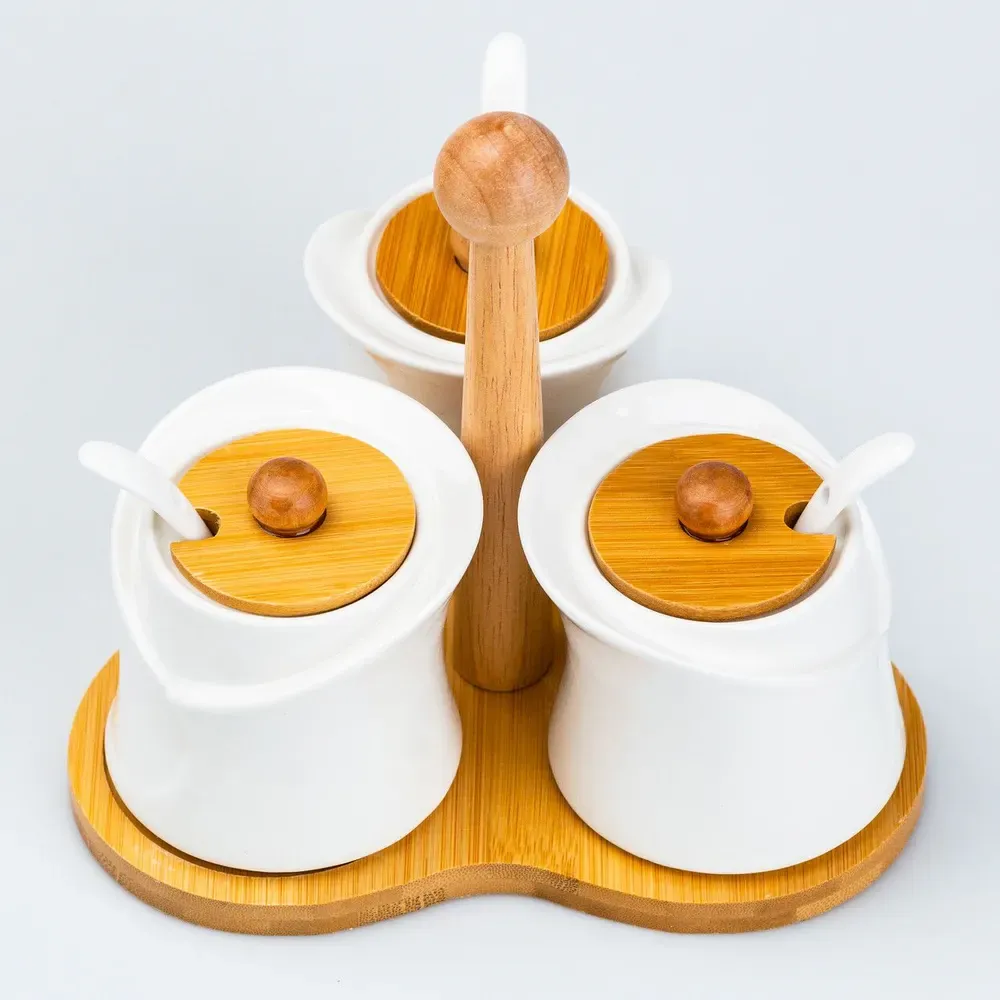 Сервировочный набор для соусов и конфитюра с ложками на бамбуковой подставке 3 шт. (HP246)