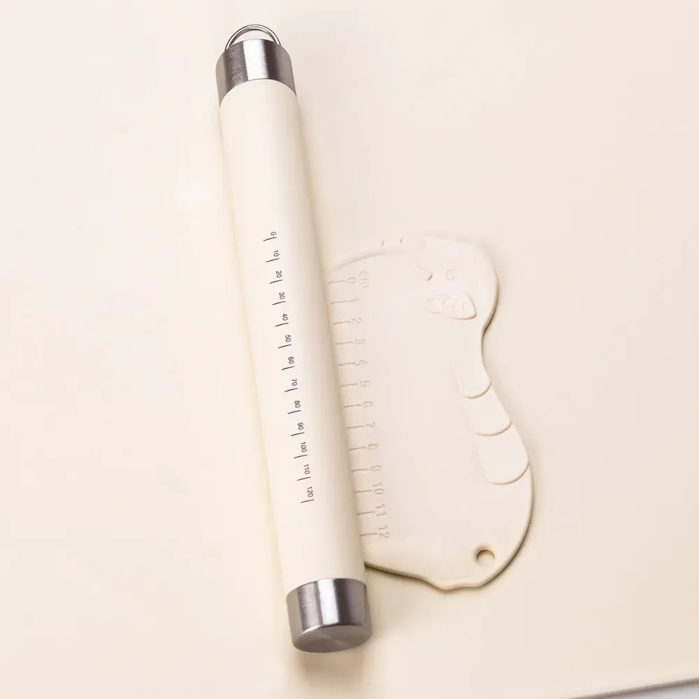 Силиконовый коврик со скалкой для раскатки прямоугольного теста с разметкой Бежевый (HP34547W)
