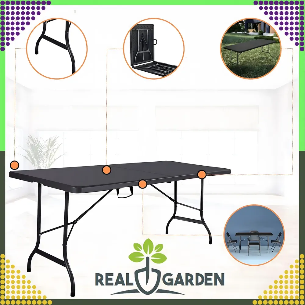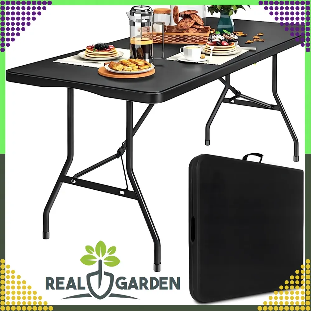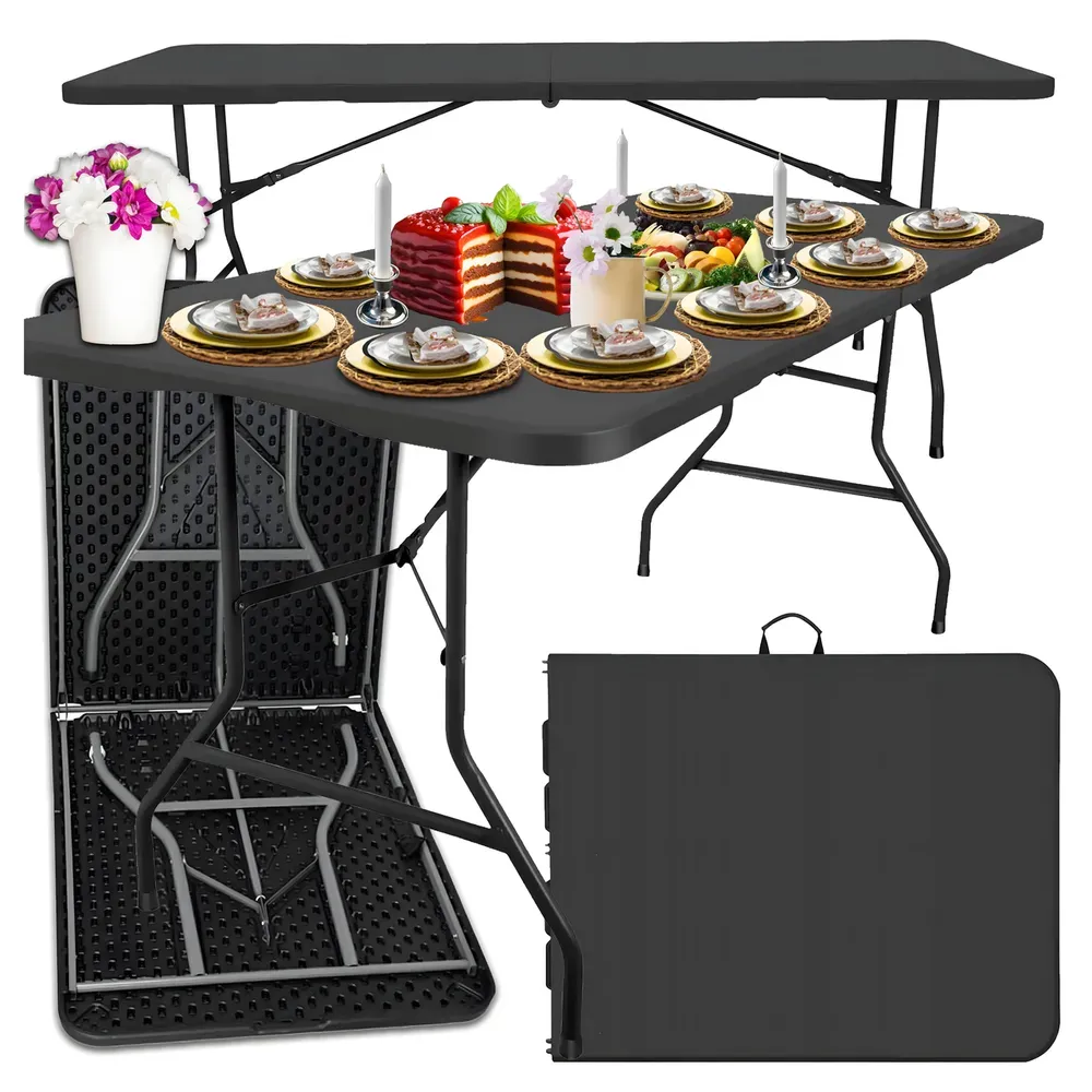 Складаний стіл валіза для кемпінгу, саду або банкетів (180x74x74 см), Чорний