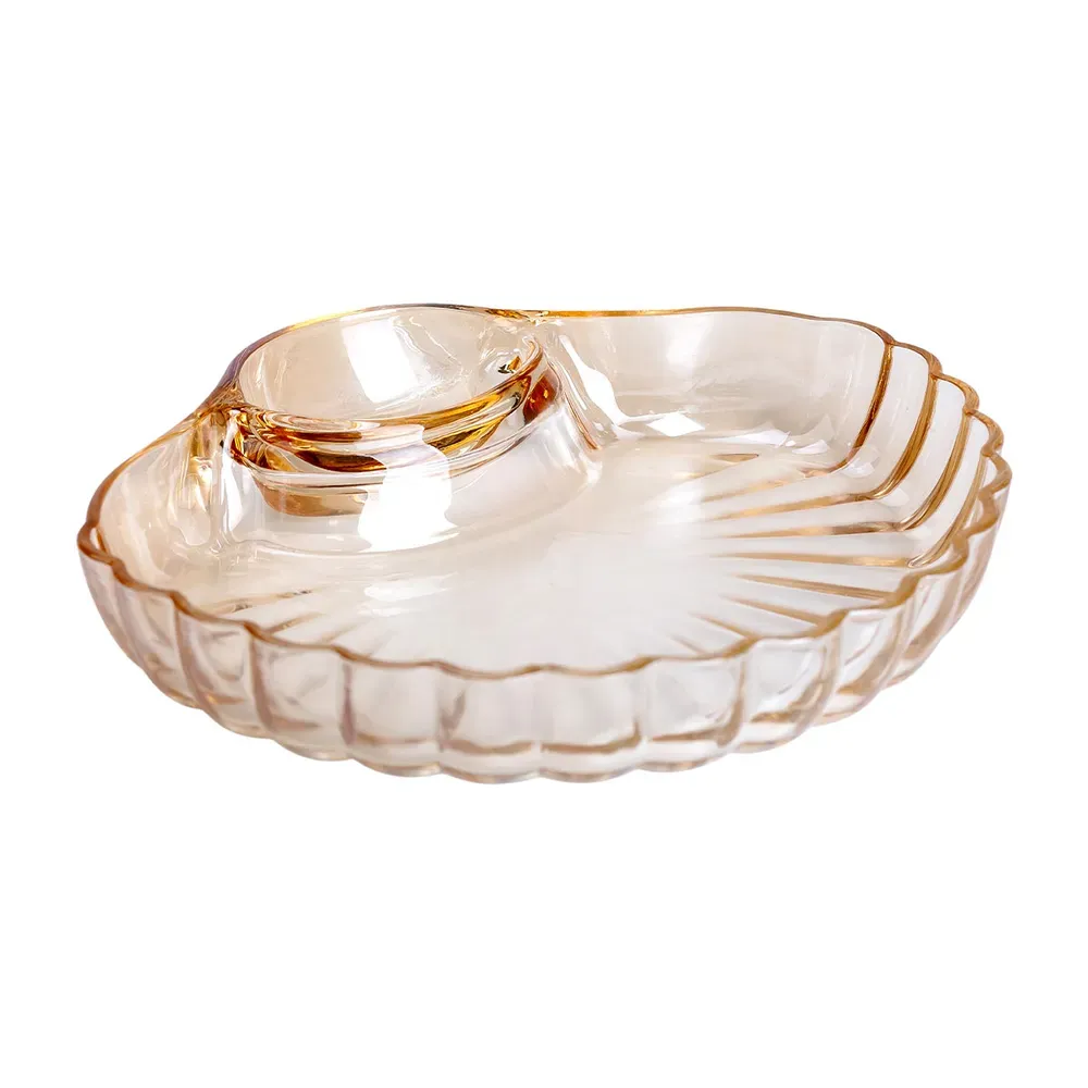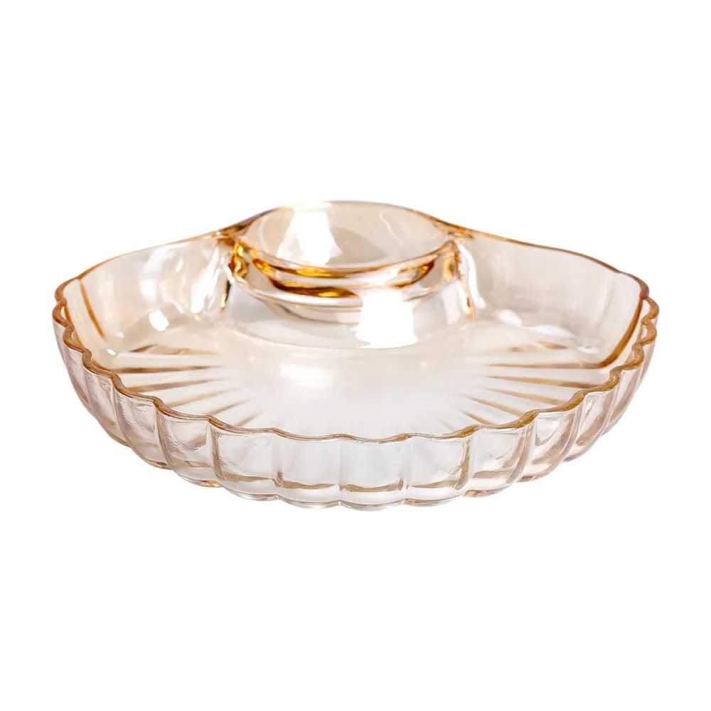 Скляне блюдо з соусником – ідеальне рішення для вишуканої подачі в HoReCa та вдома. Стильна скляна тарілка з інтегрованим соусником, створена для тих, хто цінує витонченість у подачі страв. Цей аксесуар ідеально підходить як для ресторанів, кафе, фаст-фудів, так і домашнього використання. Унікальний дизайн підкреслює естетику сервірування. Основні характеристики тарілки довжина – 21 см; ширина – 19 см; висота – 3 см; матеріал - високоякісне скло, стійке до подряпин та механічних пошкоджень. Переваги та особливості блюда для подачі Оптимальний розмір дозволяє використовувати блюдо для подачі різноманітних страв: закусок, салатів, десертів, гарнірів та основних страв. Вбудований соусник ідеально підходить для подачі соусів, дипів, заправок та топінгів, зберігаючи естетику подачі та чистоту основної страви. Прозоре скло вигідно підкреслює колірну гаму страв, що подаються, роблячи їх більш апетитними та привабливими. Універсальний та вишуканий дизайн впишеться в будь-який інтер'єр: від сучасного мінімалізму до класичного стилю. Виготовлено із міцного скла, стійкого до механічних пошкоджень та подряпин, що гарантує тривалий термін служби. Матеріал не вбирає запахи та не забарвлюється, забезпечуючи гігієнічність та збереження первісного вигляду. Зручна форма забезпечує можливість штабелювання кількох страв, що є особливо актуальним для закладів з високою прохідністю. Ідеально підходить для: Ресторанів та кафе – для ефектної подачі страв із соусами, салатів, закусок та десертів. Фаст-фудів та їдалень – для сервірування страв, що вимагають поділу соусів та основної страви. Домашнє використання – як для святкових застіль, так і для повсякденних обідів. Це скляна тарілка з соусником – втілення елегантності, стилю та практичності. Воно підкреслить смак та подачу страв, роблячи їх візуально привабливими. Висока якість та функціональний дизайн роблять його ідеальним вибором для ресторанів, кафе та домашньої кухні.