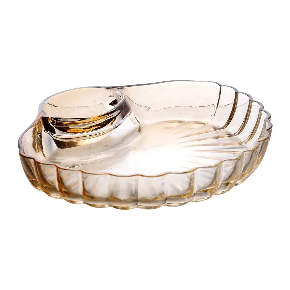 Скляне блюдо із соусником 21х19х3 см тарілка для суші коричнева HP-YH-1 (HP-YH-1)