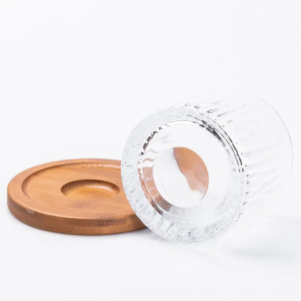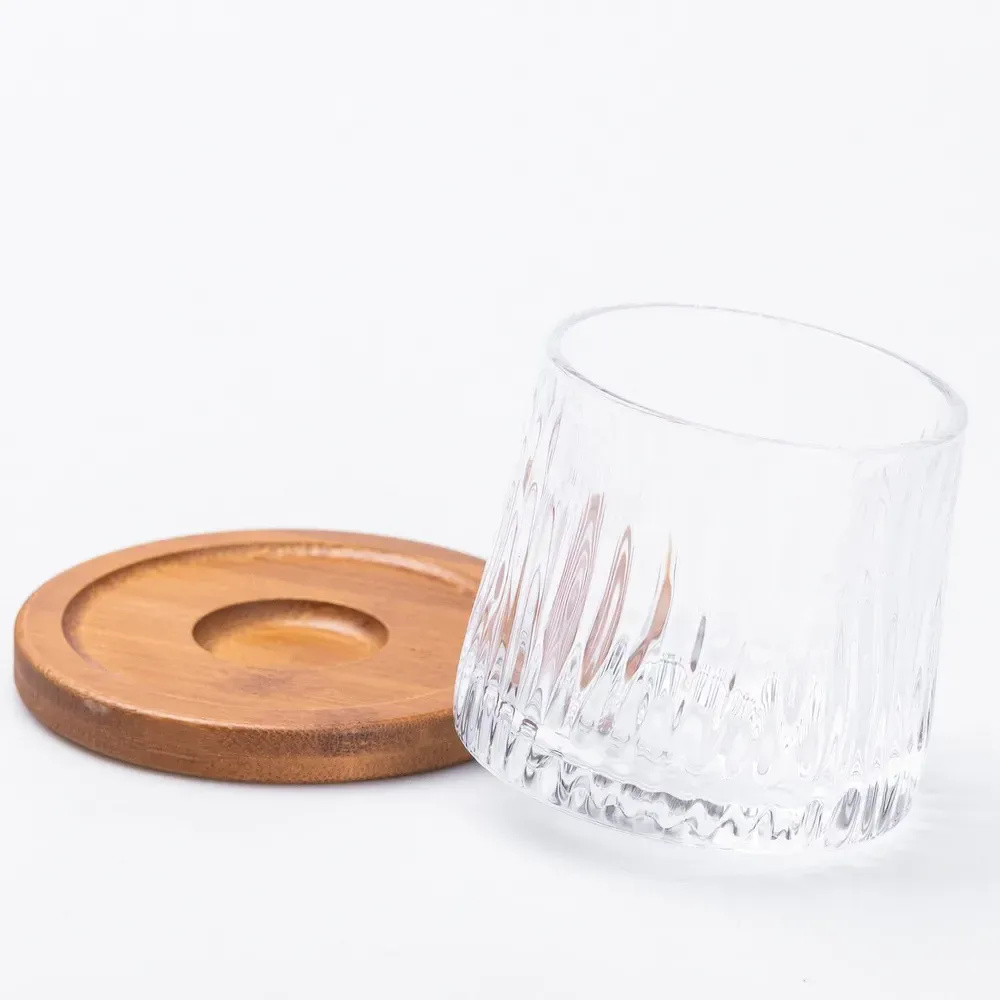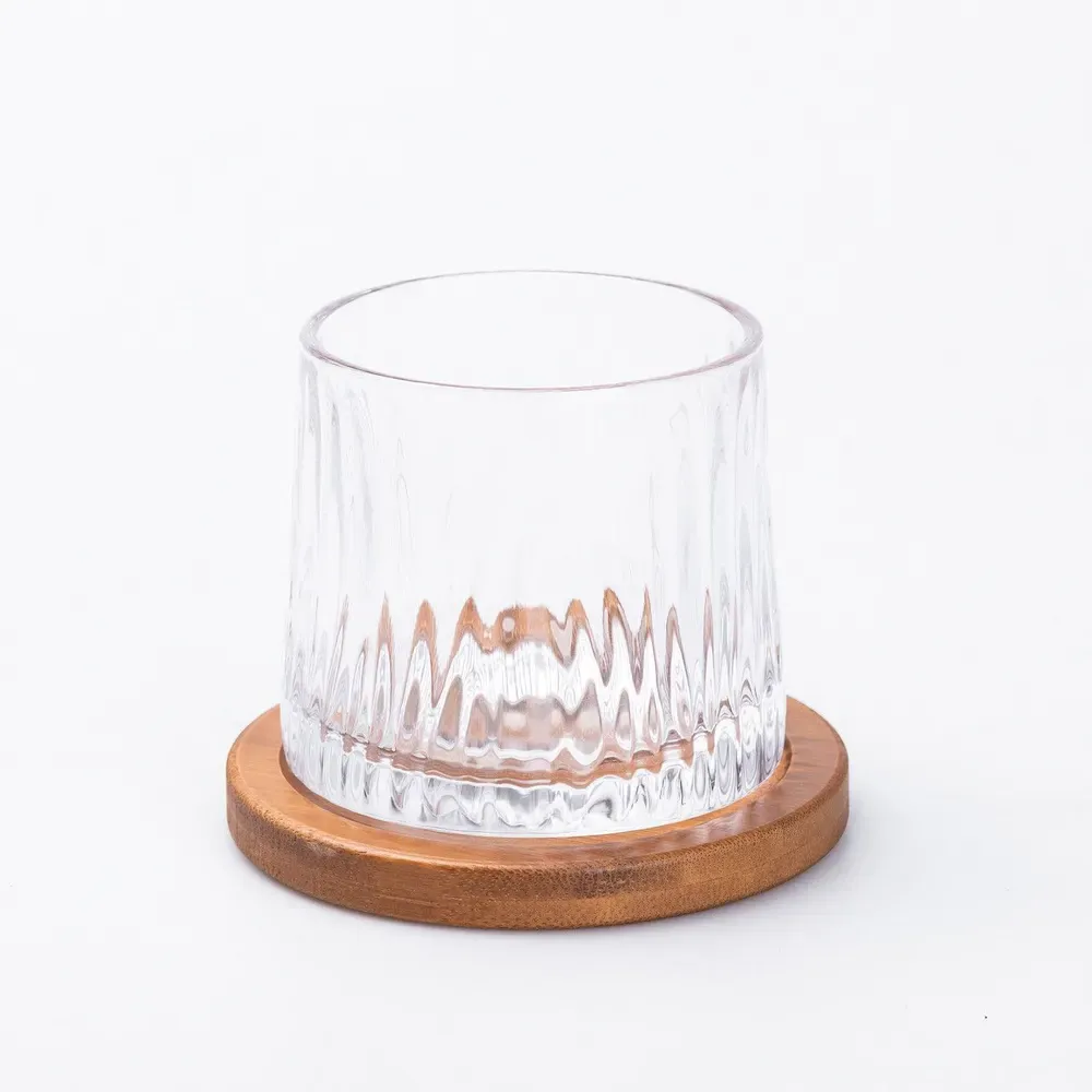 Стакан для виски юла стеклянная прозрачная с деревянной подставкой (HP22360)