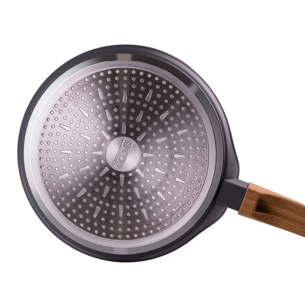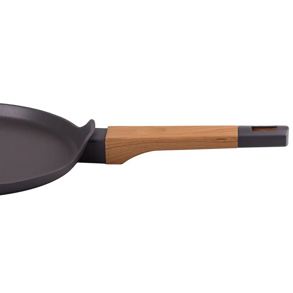 Антипригарное гранитное покрытие обеспечивает легкость в использовании и удобство в чистке, предотвращая прилипание теста. Средний размер этой сковороды подходит для жарки равномерных и вкусных блинчиков, делая процесс приготовления удовлетворительным и эффективным.