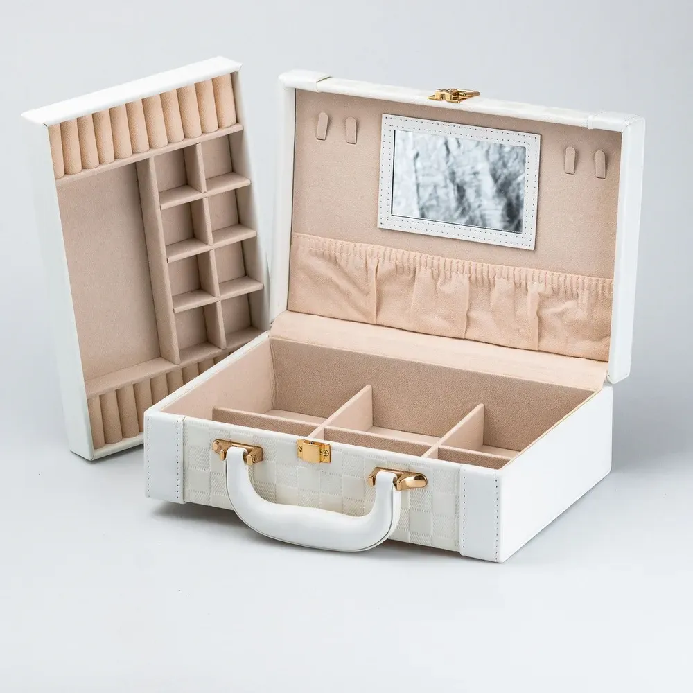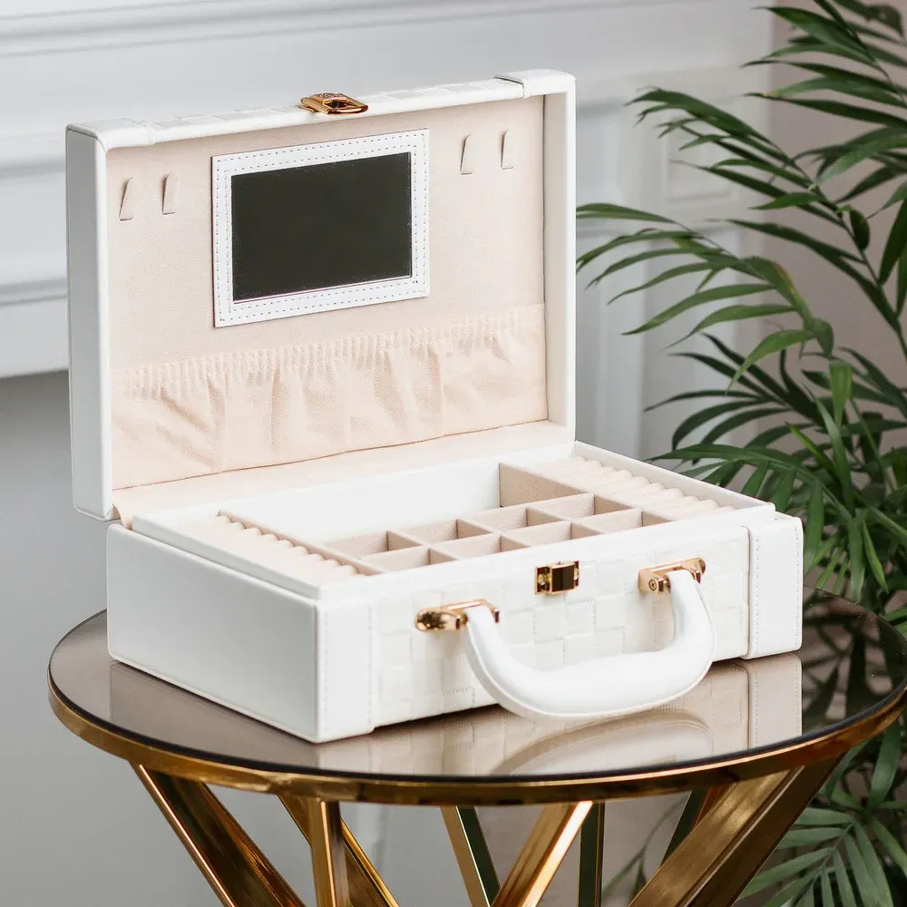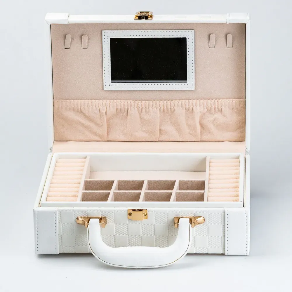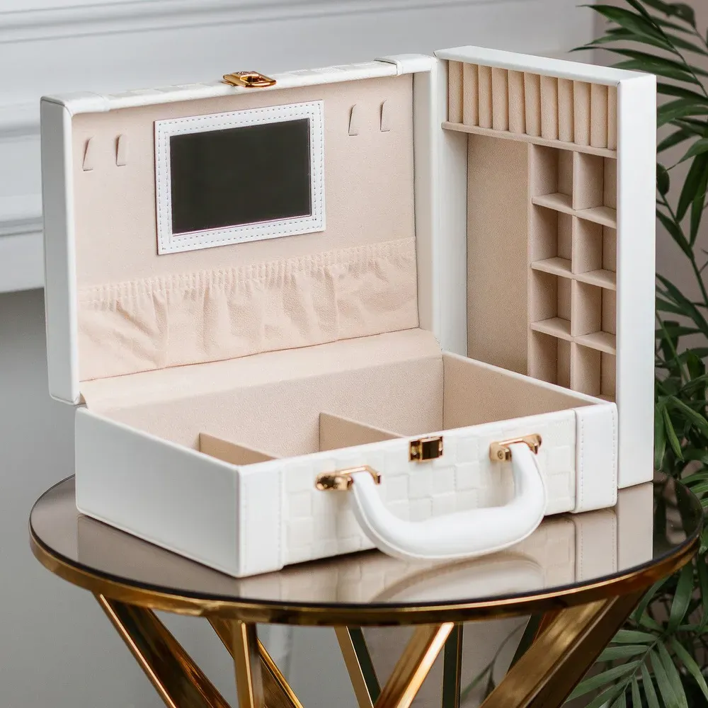 Ящик органайзер для украшений бижутерии прямоугольный 27 х 18.5 х 9 см с зеркальцем чемодан из экокожи Белый (HP47615W)
